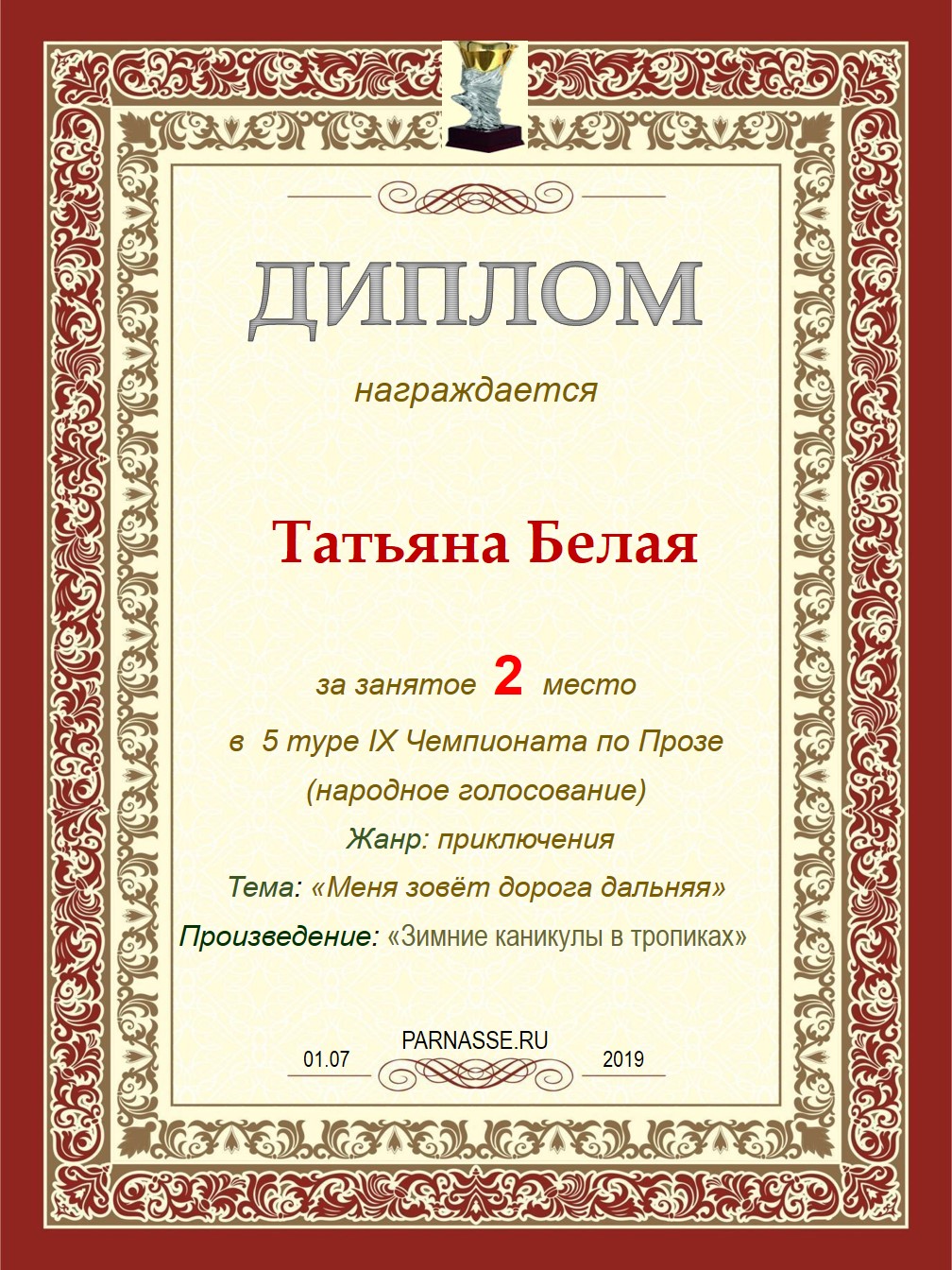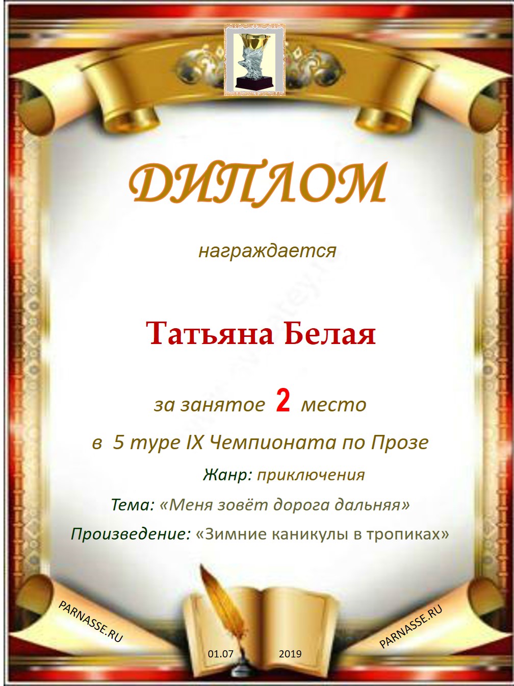 Поздравляю с занятым 2 местом в 5 туре XII Чемпионата Парнаса по прозе!
