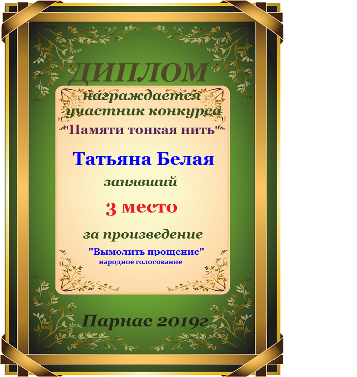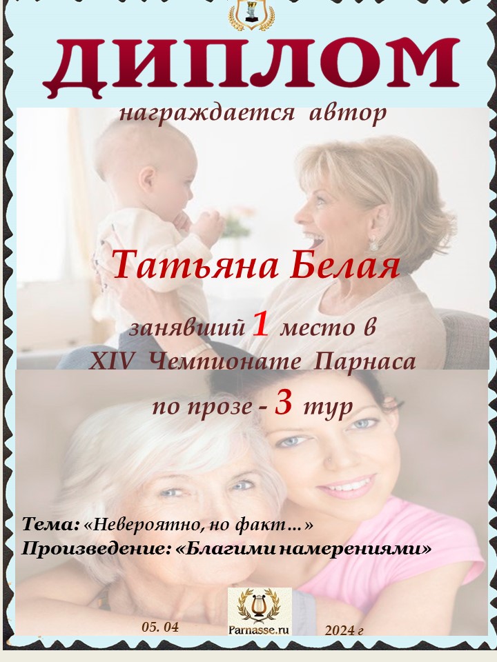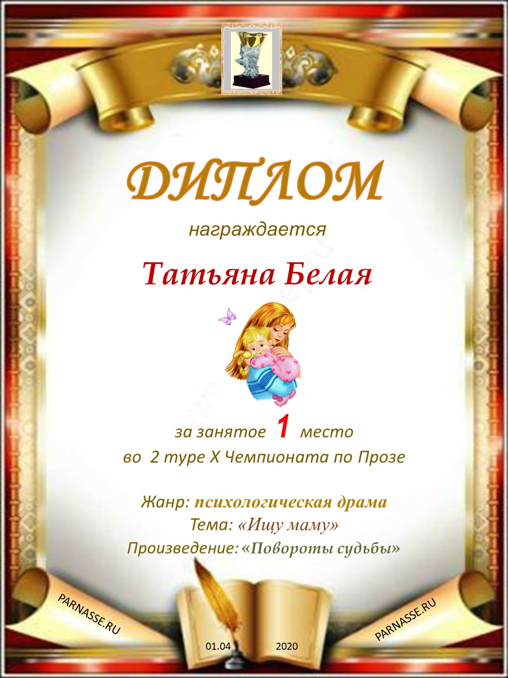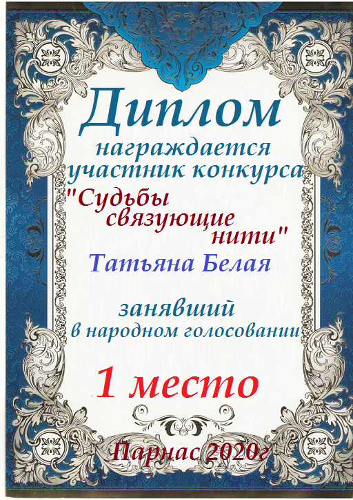 Первое место в судейском голосовании по итогам конкурса "Судьбы связующие нити" (проза)
