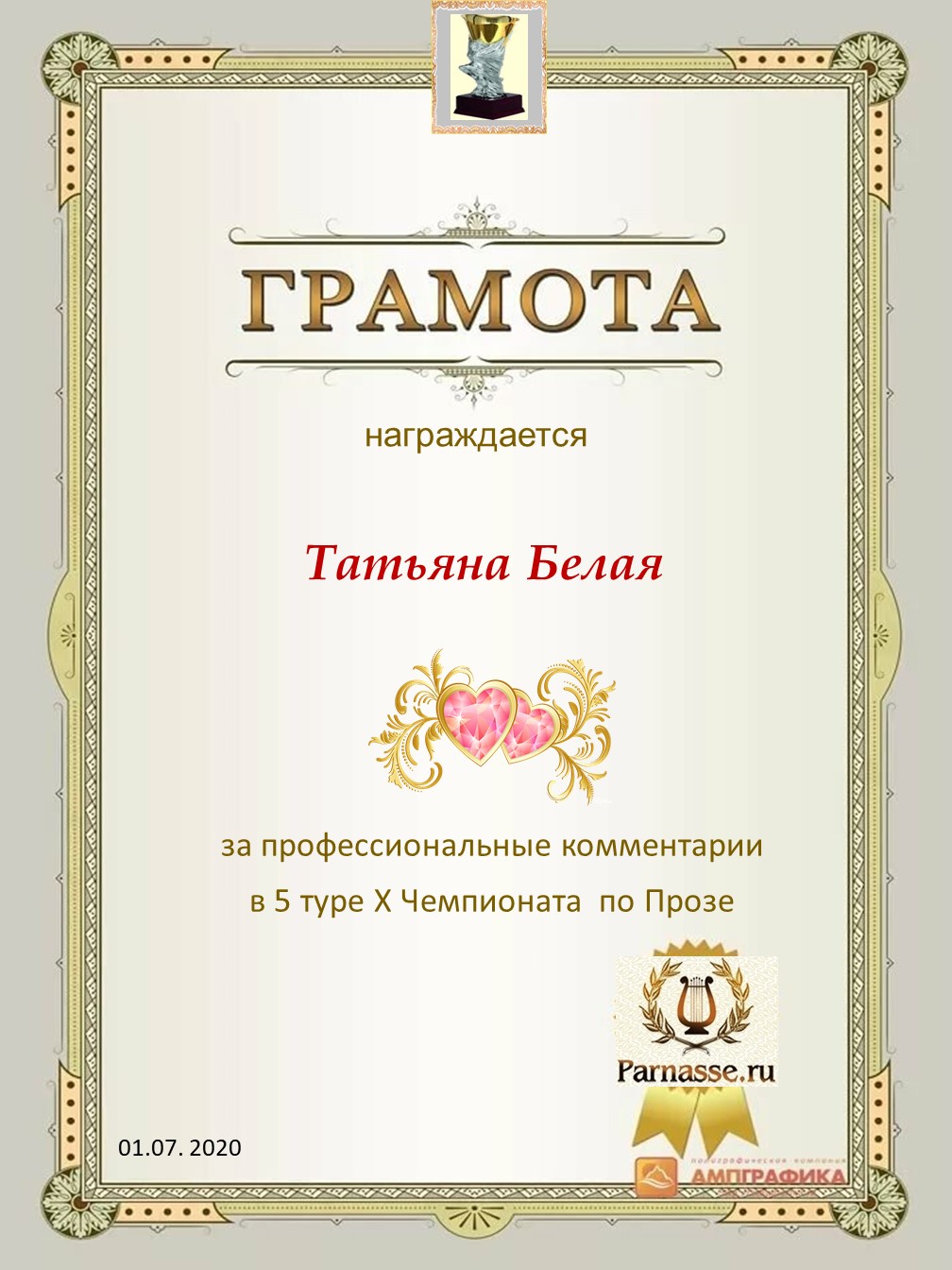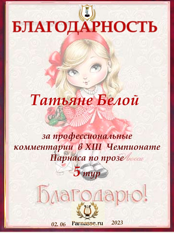 Большое спасибо за профессиональные и объективные комментарии в 5 туре X Чемпионата Парнаса по Прозе!
