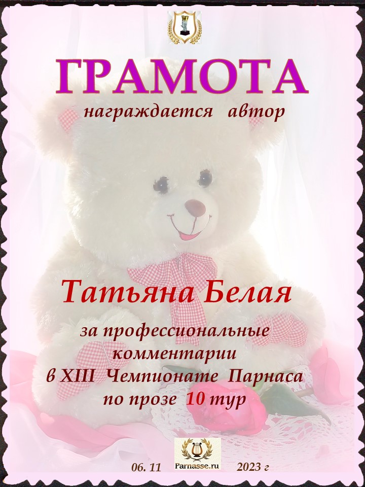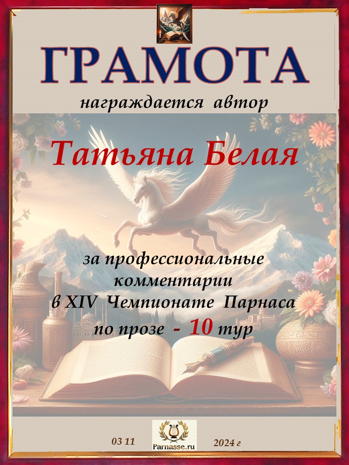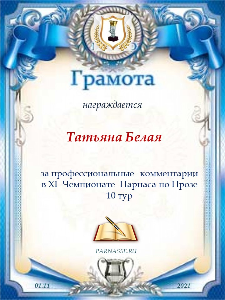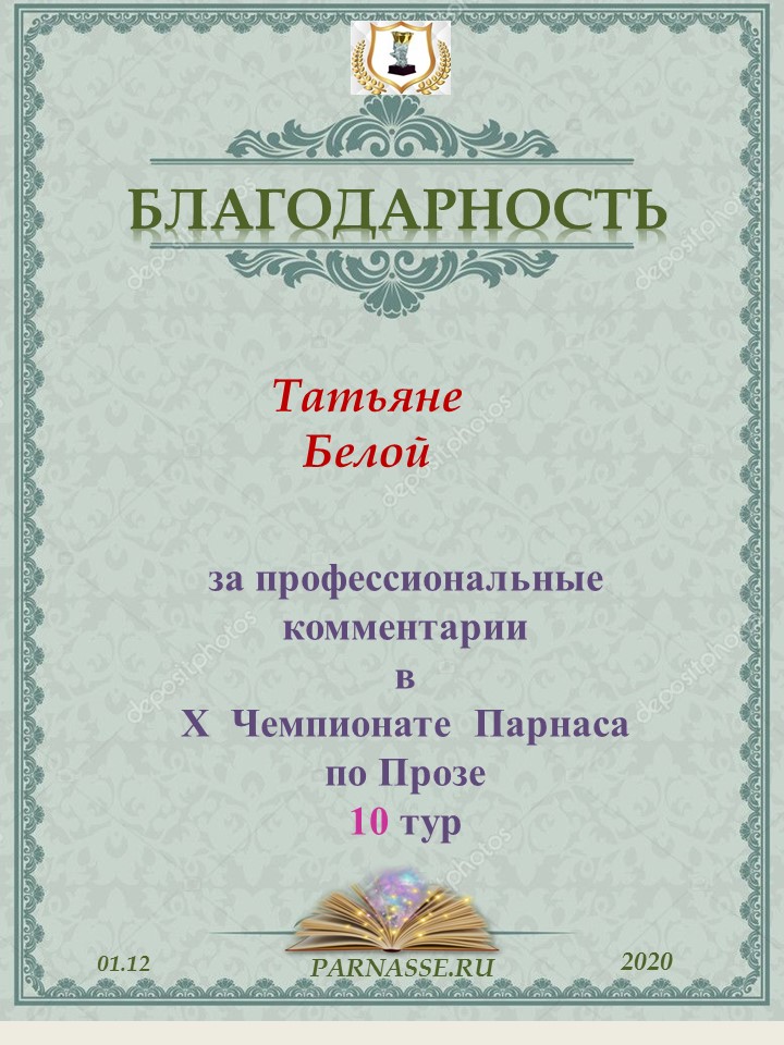 Большое спасибо за профессиональные и объективные комментарии в 10 туре X Чемпионата Парнаса по Прозе!