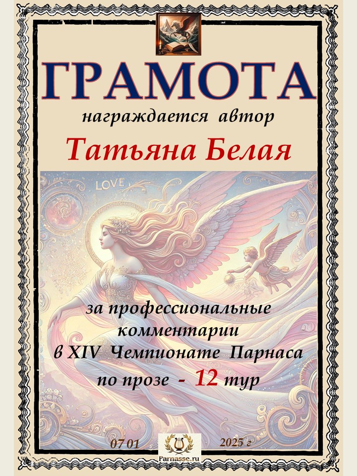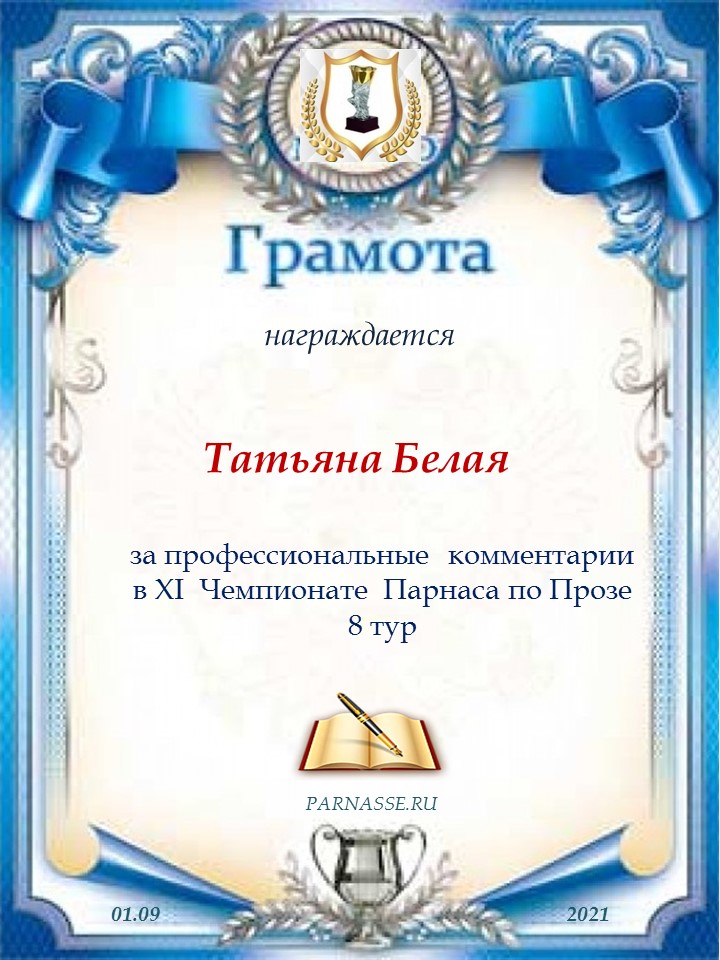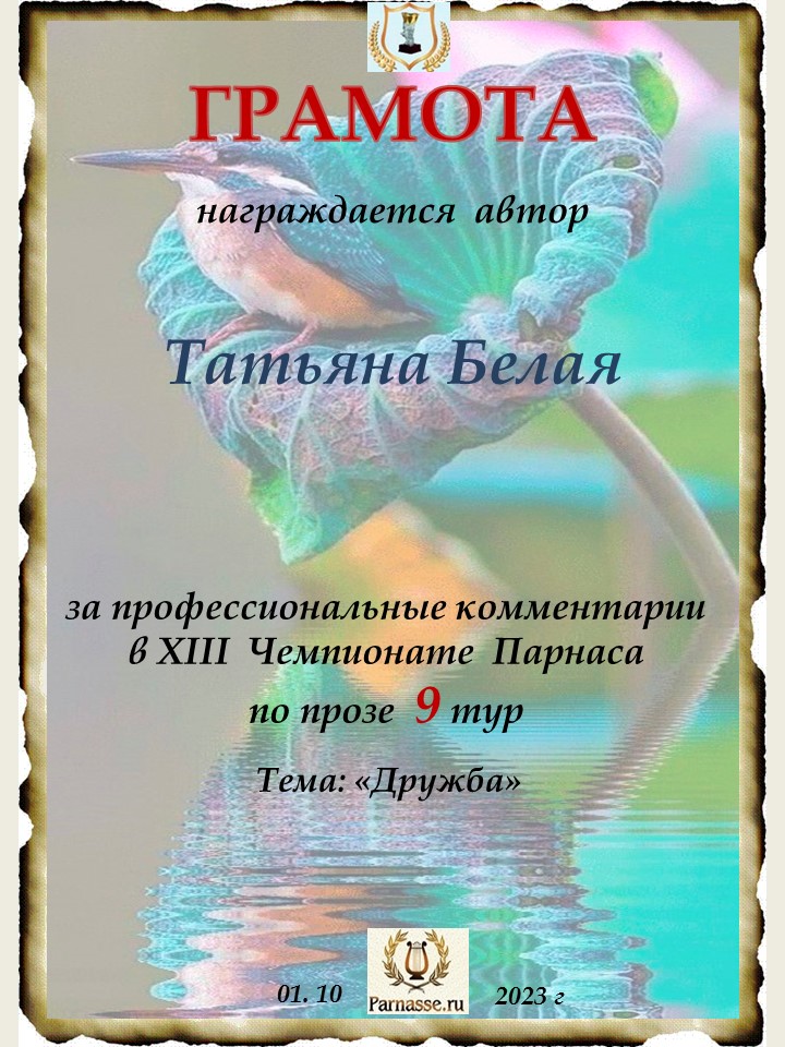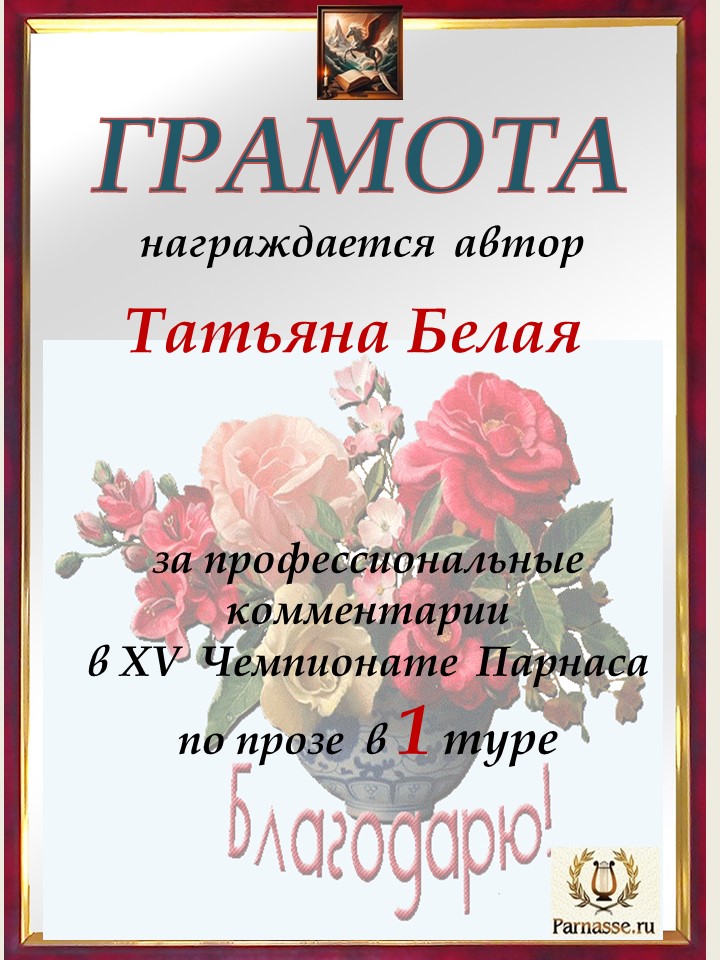Благодарю за профессиональные комментарии в 9 туре XI Чемпионата Парнаса по Прозе!