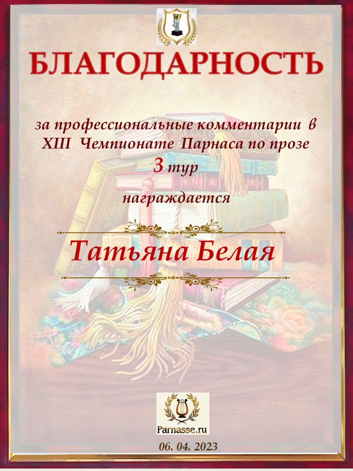 Спасибо за высокопрофессиональное и объективное судейство в 3 туре X Чемпионата Парнаса по Прозе!