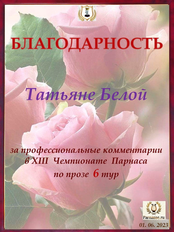 Большое спасибо за профессиональные и объективные комментарии в 6 туре X Чемпионата Парнаса по Прозе!