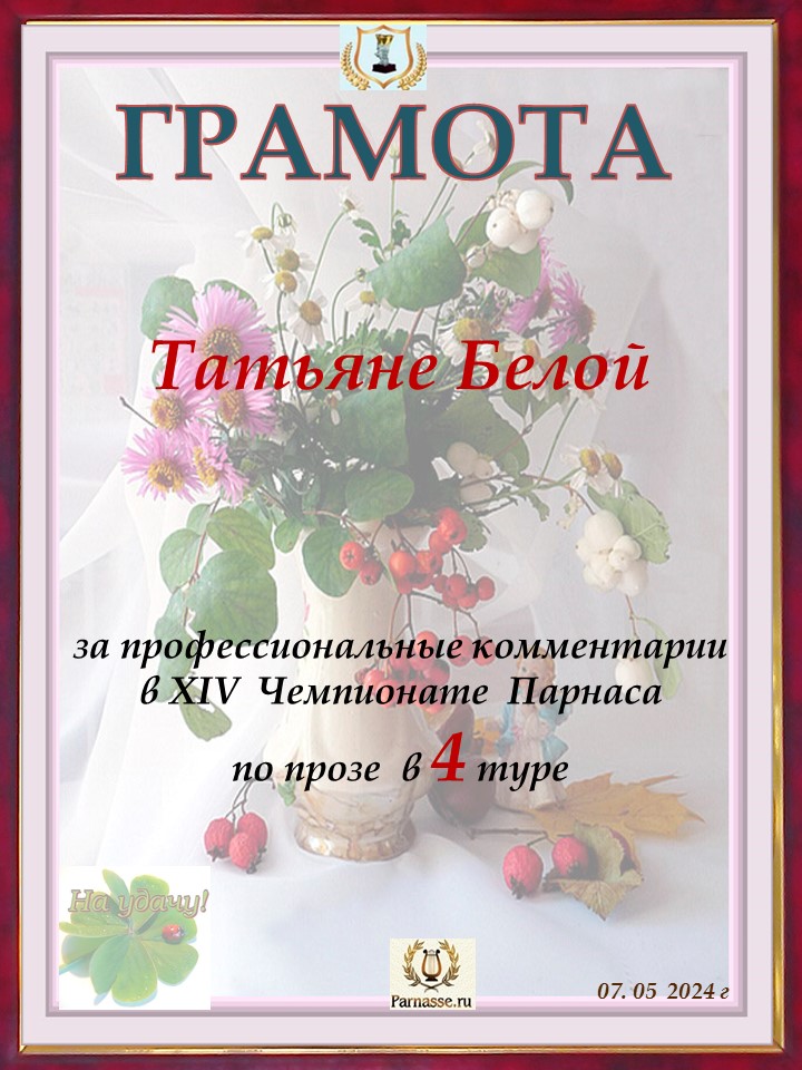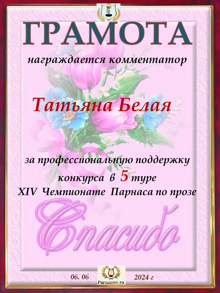 Спасибо за высокопрофессиональное и объективное судейство в 4 туре X Чемпионата Парнаса по Прозе!