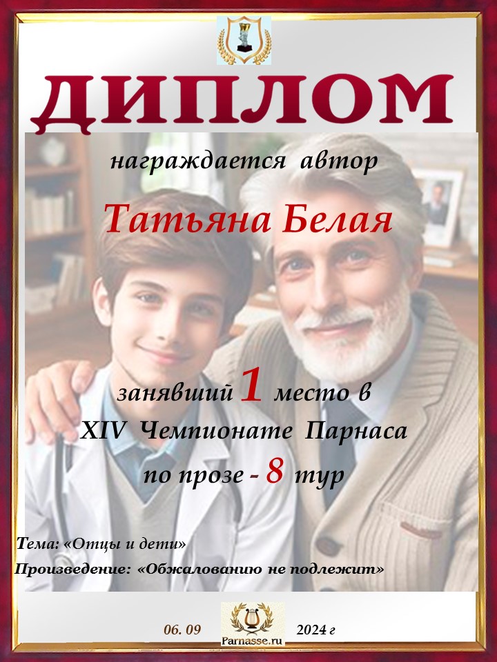 ![]() Медаль за 1 место в 8 туре XIV Чемпионата Парнаса по прозе