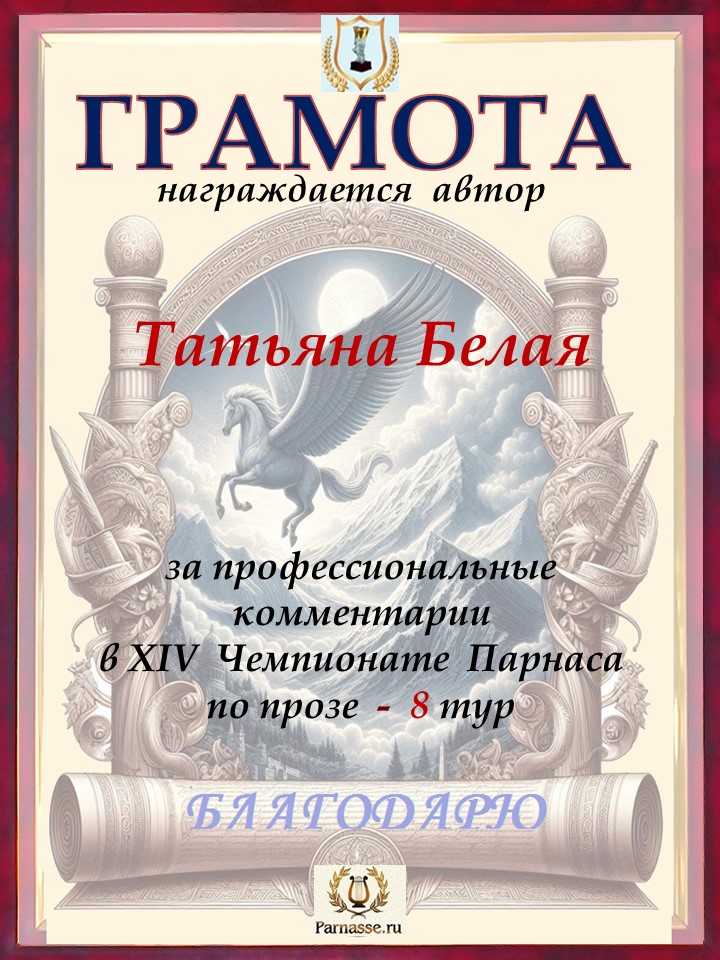 Большое спасибо за профессиональные и объективные комментарии в 8 туре X Чемпионата Парнаса по Прозе!