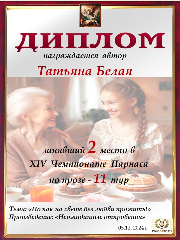 ![]() Медаль за 2 место в 11 туре XIV Чемпионата Парнаса по прозе