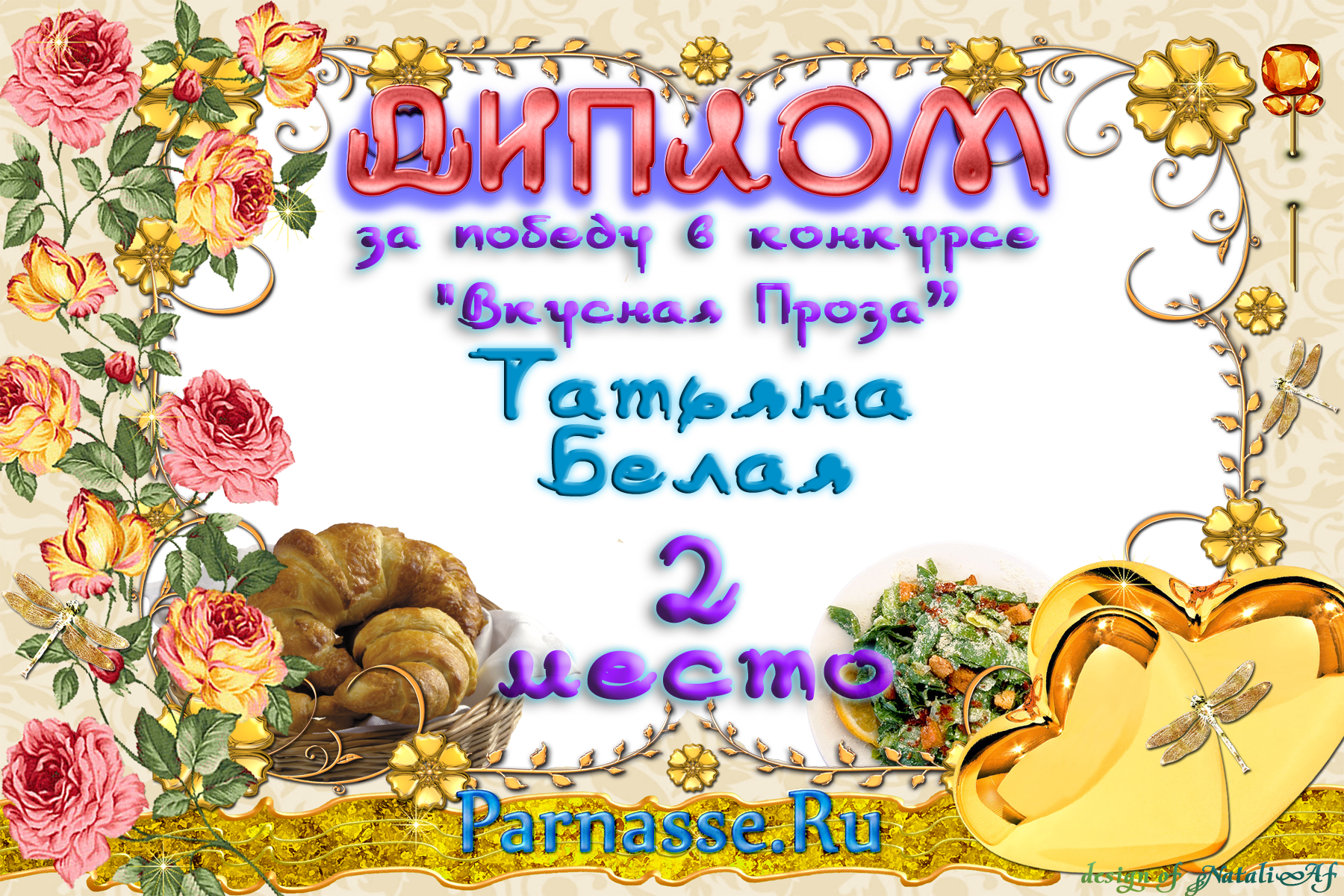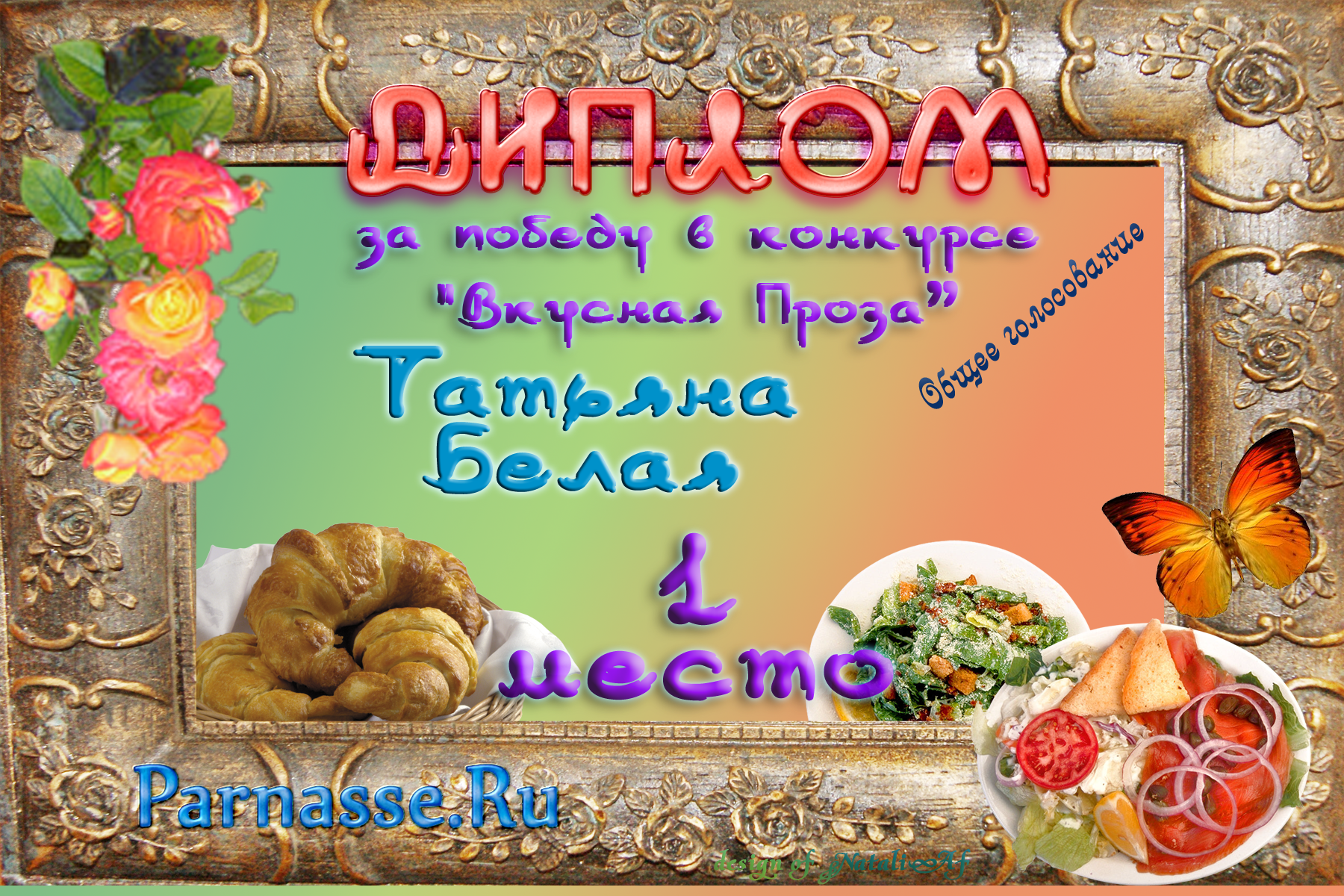 Диплом за победу во "Вкусном конкурсе" ВКУСНАЯ ПРОЗА!