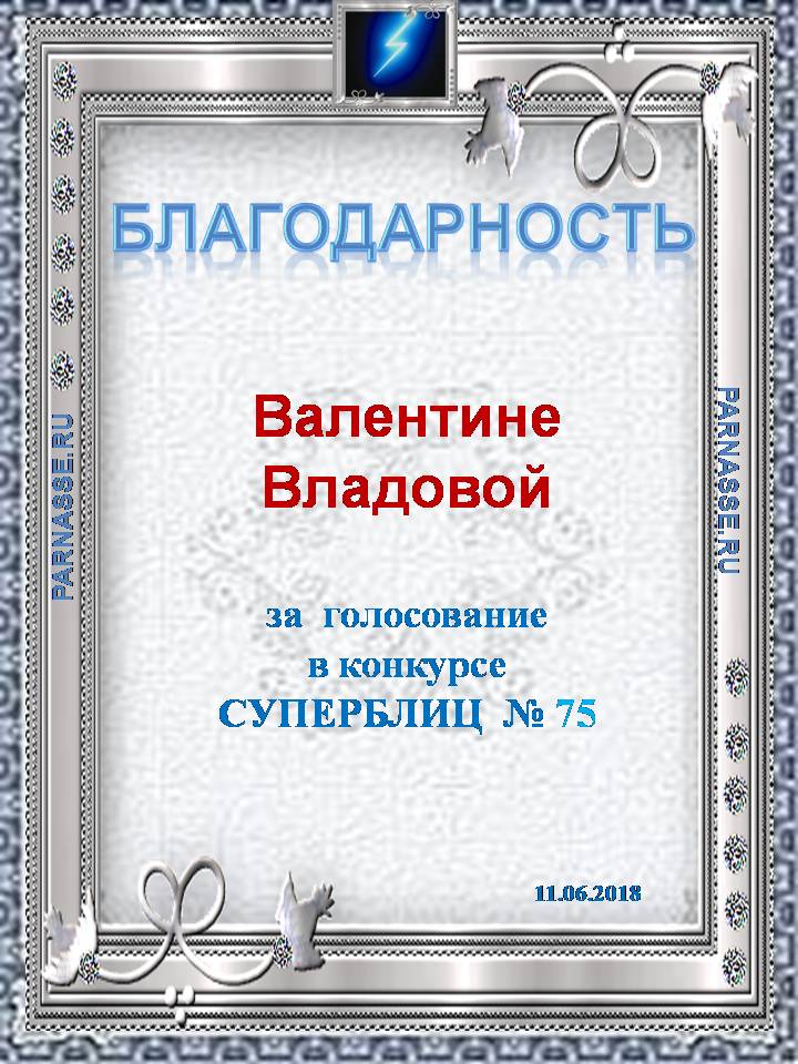 Благодарность за активное голосование в 75 конкурсе СУПЕРБЛИЦА!СПАСИБО БОЛЬШОЕ!