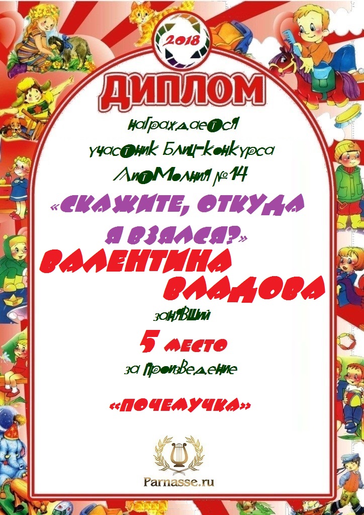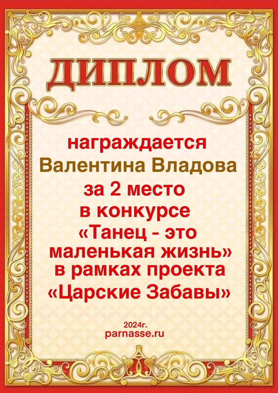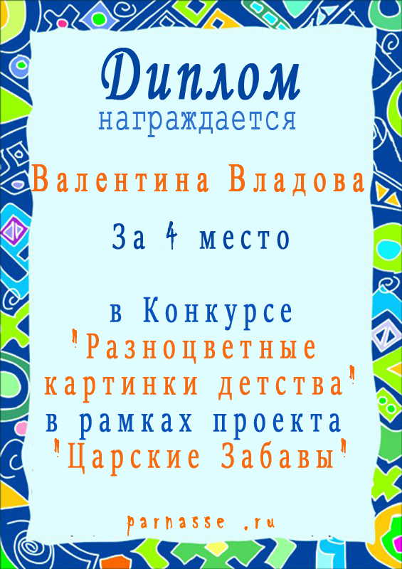 За 4 место в Конкурсе "Разноцветные картинки детства" в рамках проекта "Царские Забавы"