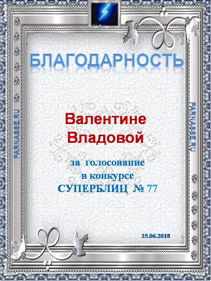 Благодарность за активное голосование в 77 конкурсе СУПЕРБЛИЦА!СПАСИБО БОЛЬШОЕ!