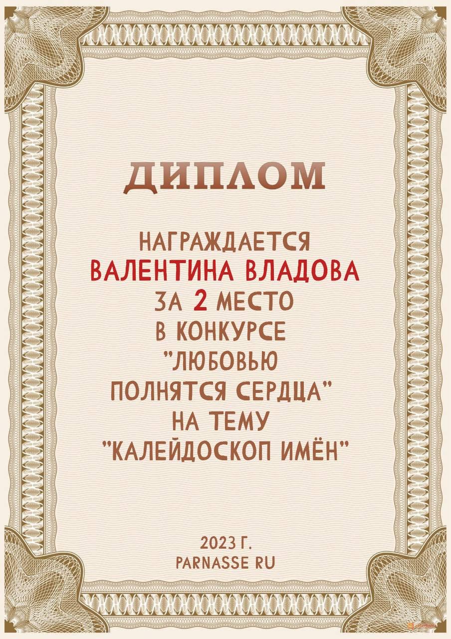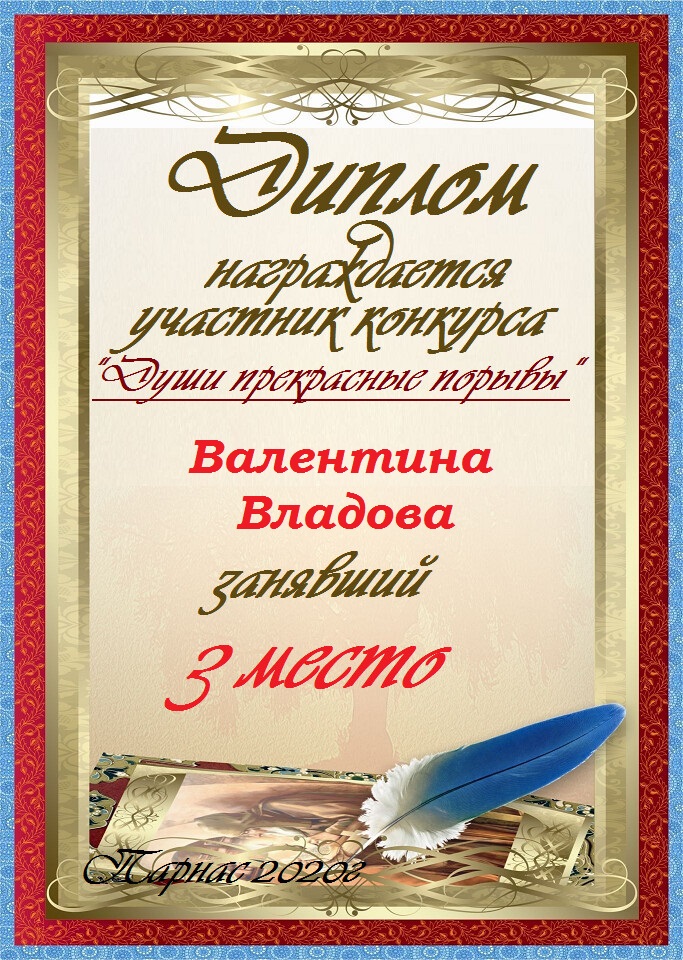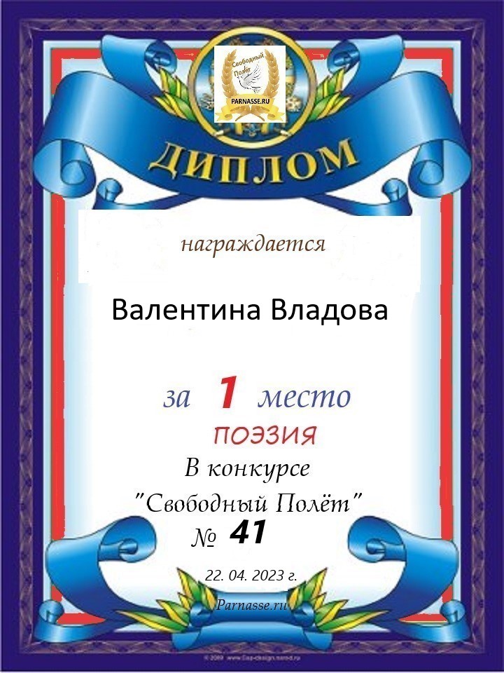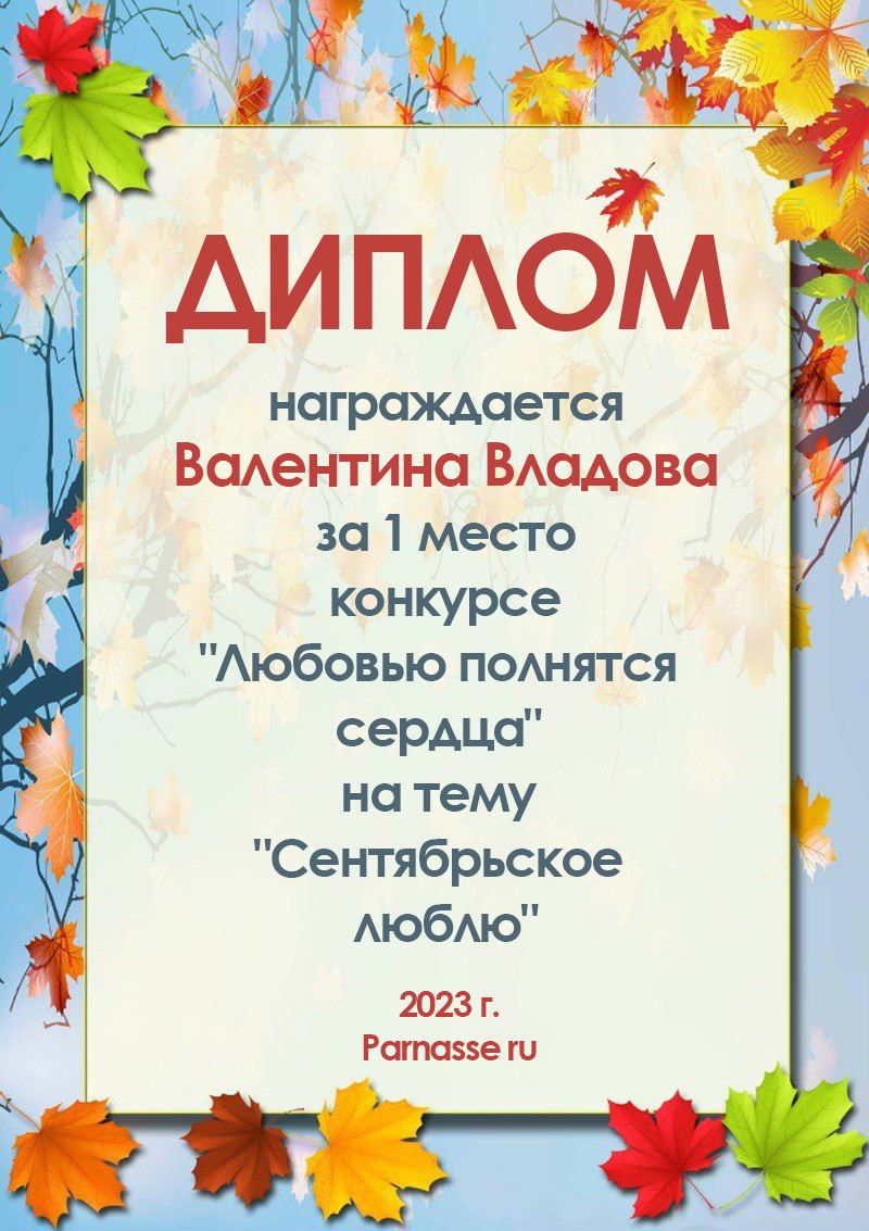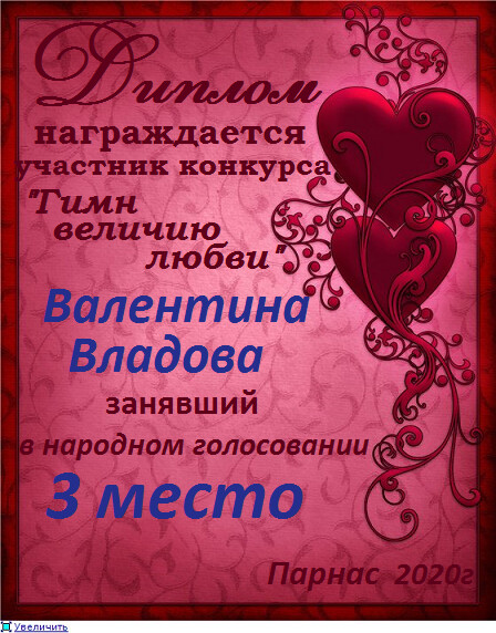 1 место в конкурсе "Поэзия чувств". Поздравляем!
