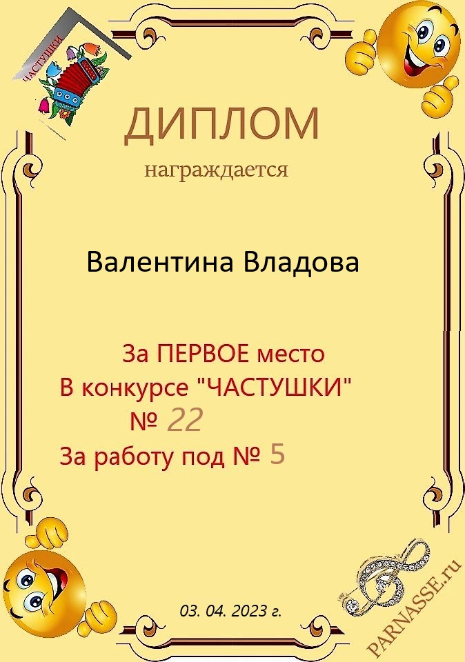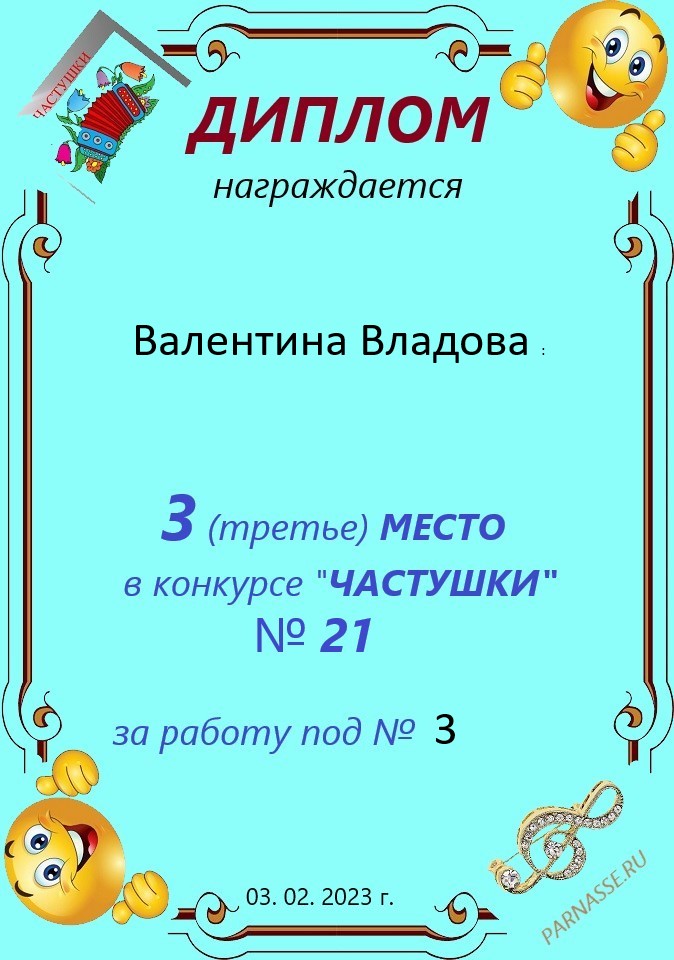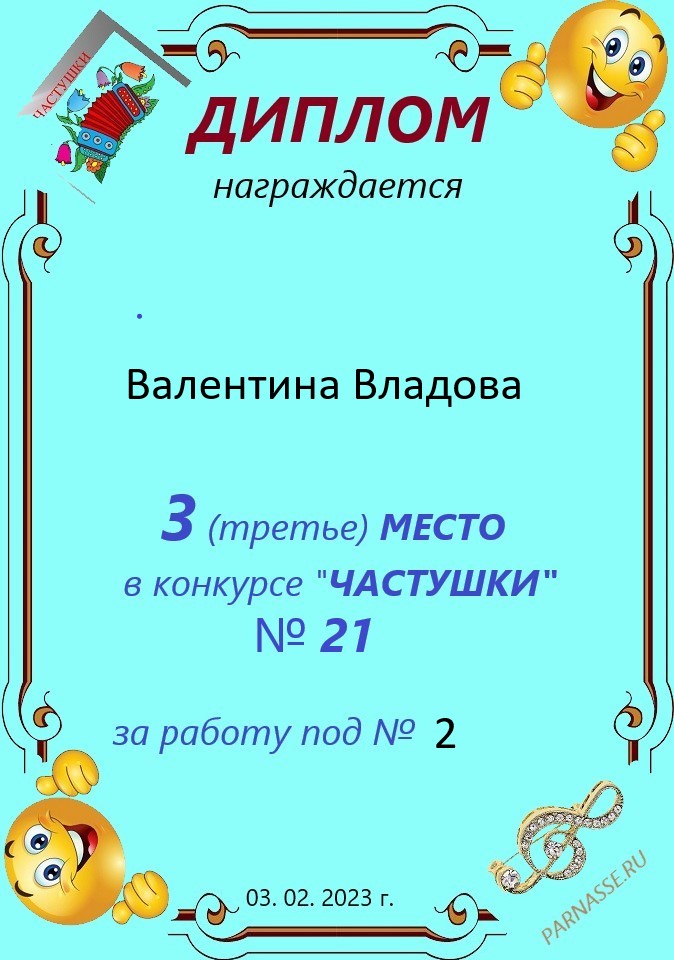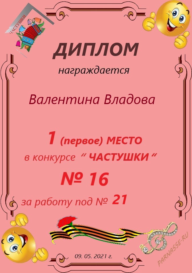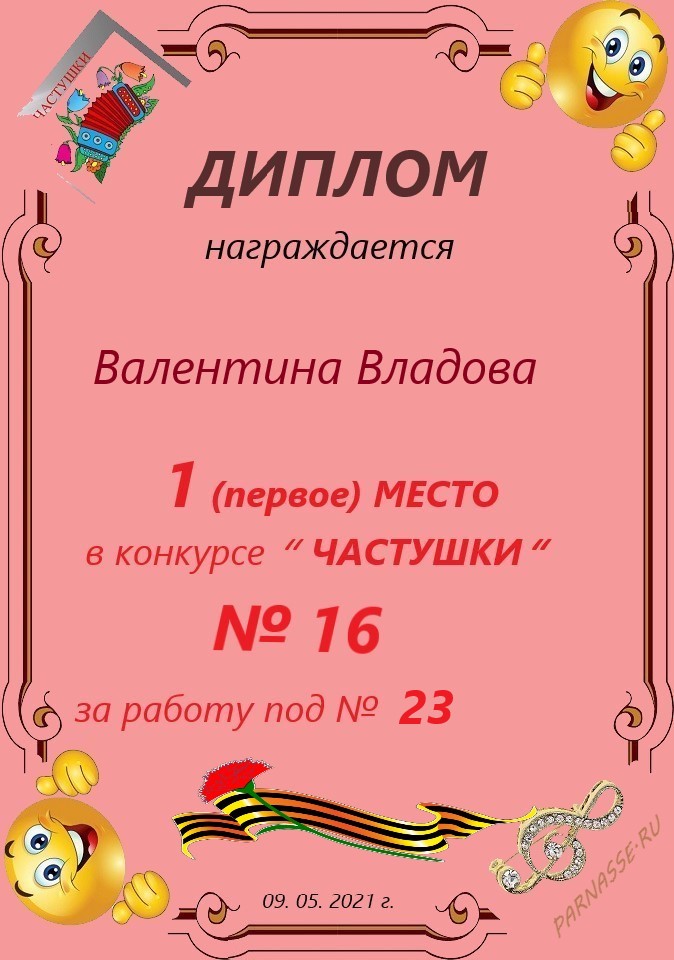 3 место место в судейском голосовании по итогам конкурса "Май хмельной стучится в окна"