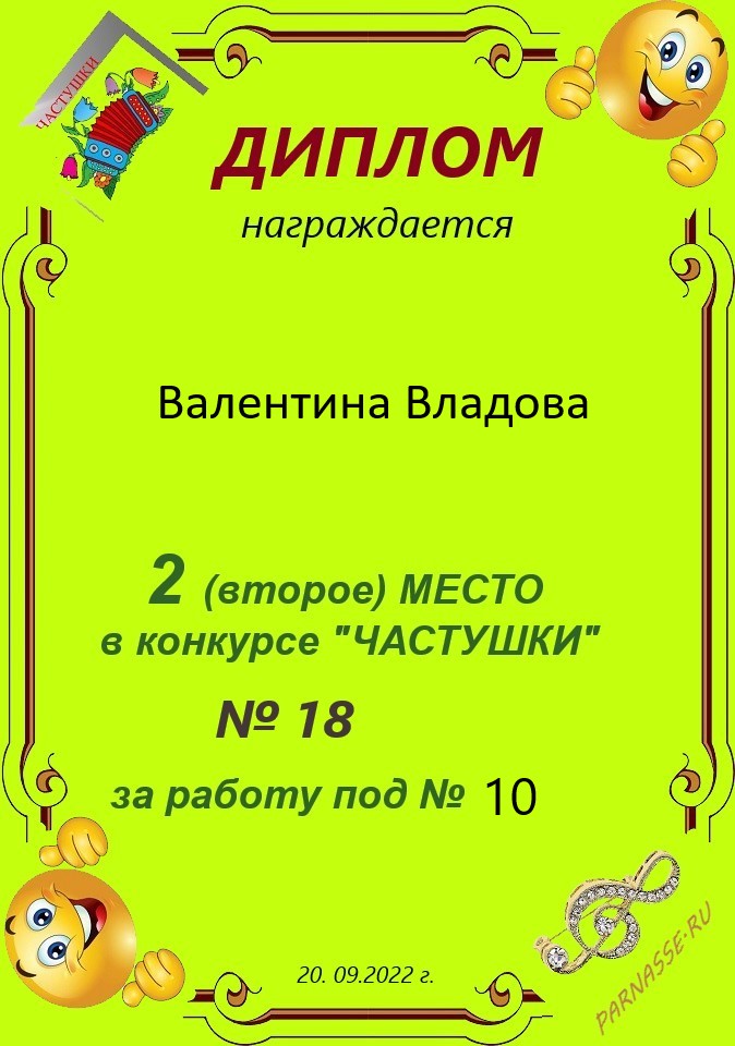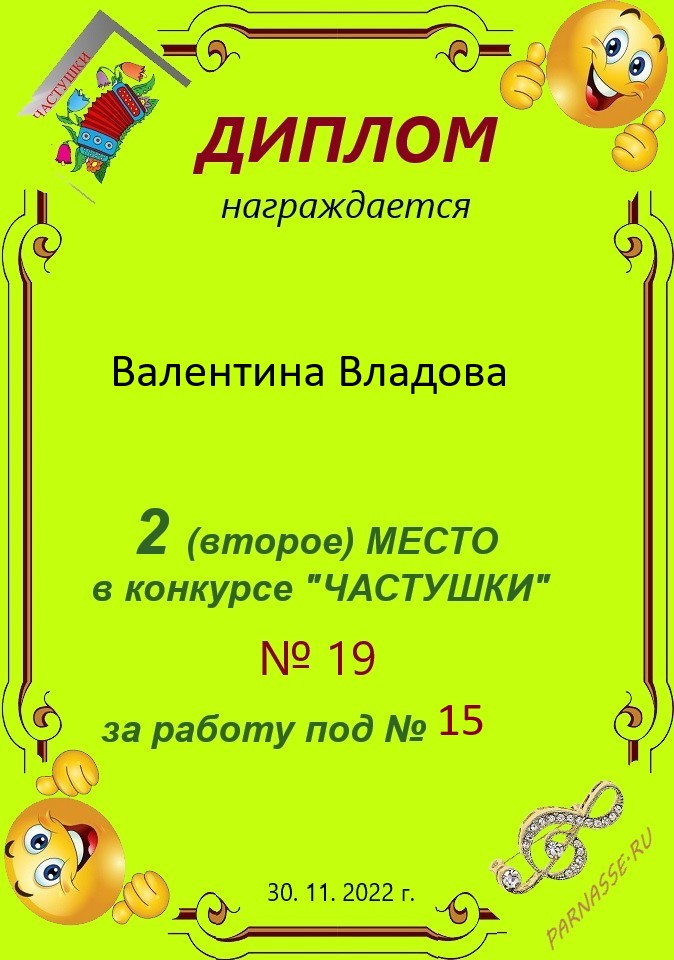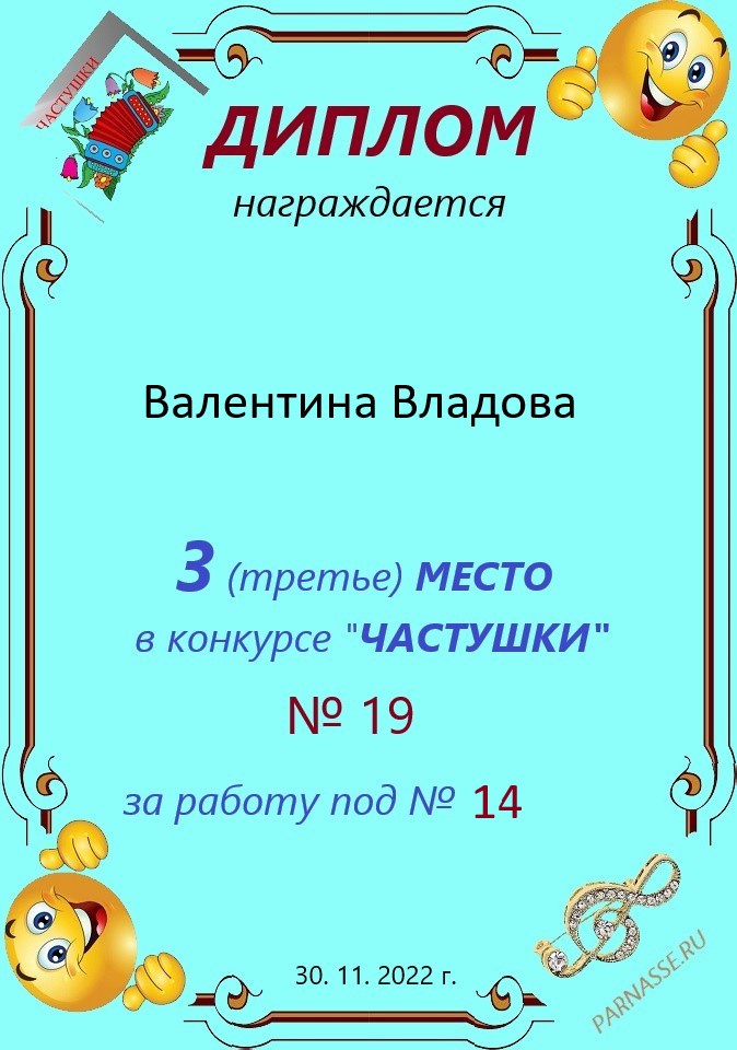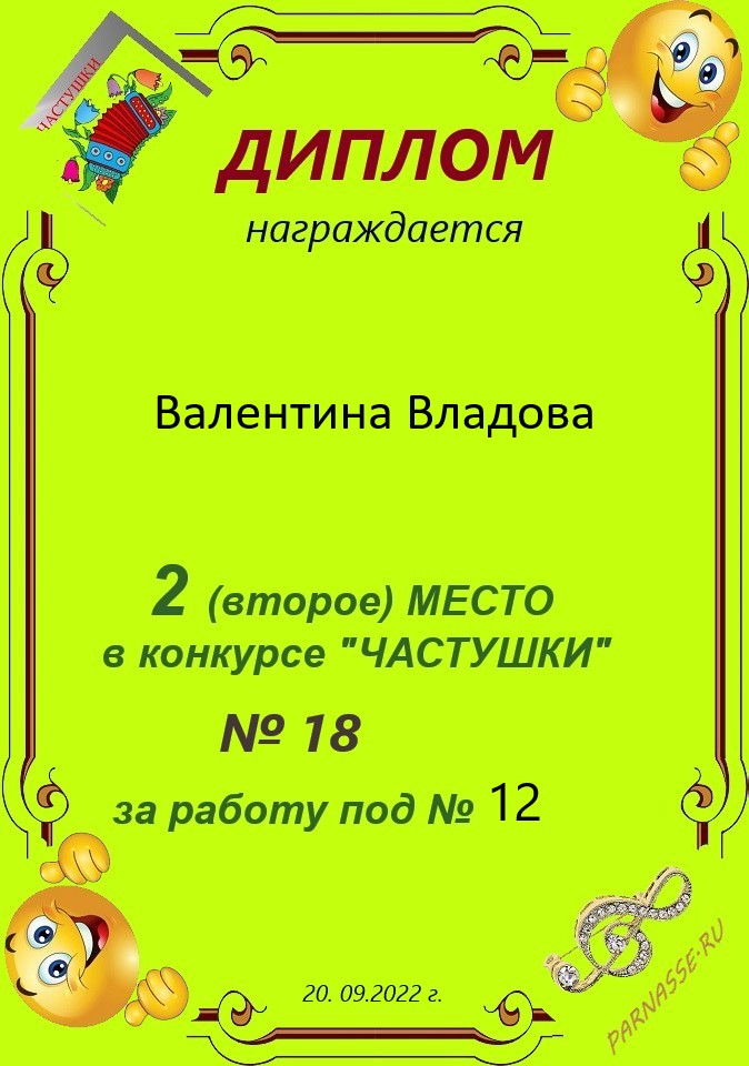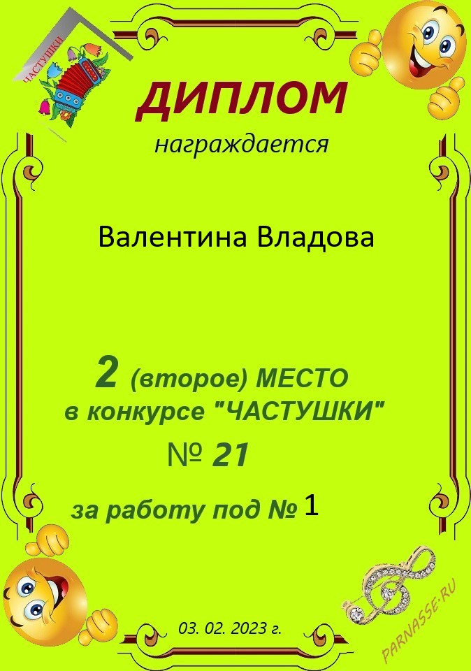3 место место в судейском голосовании по итогам конкурса "Май хмельной стучится в окна"