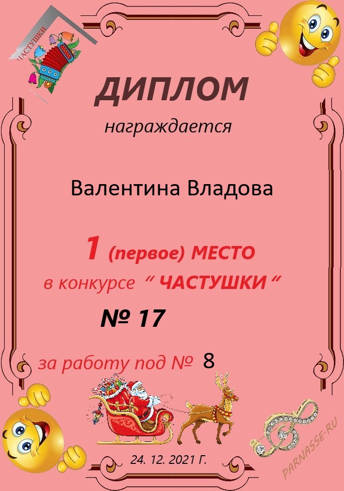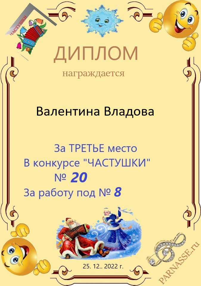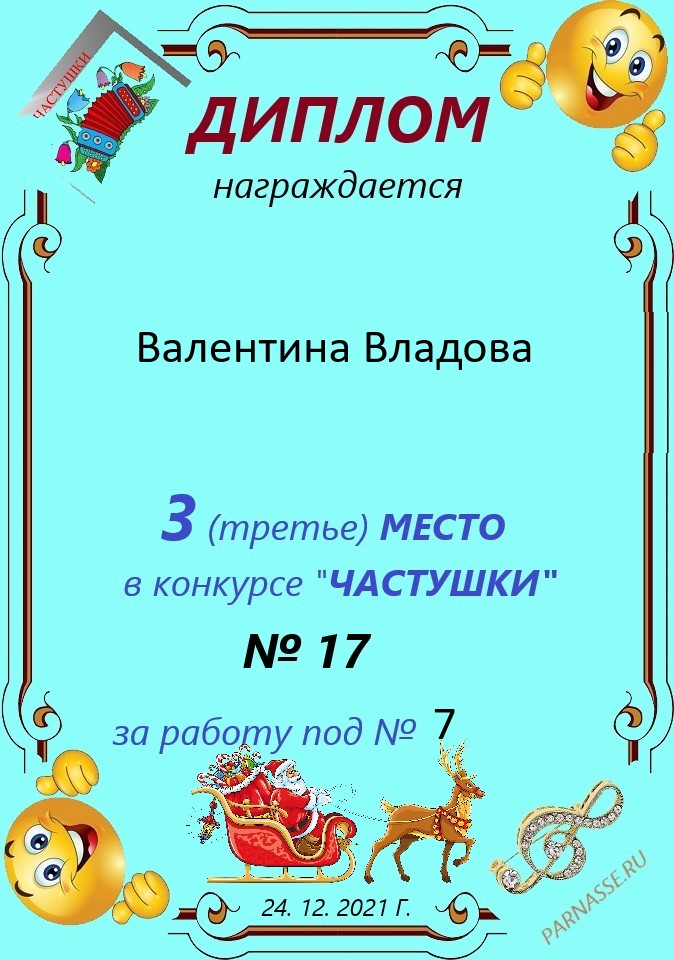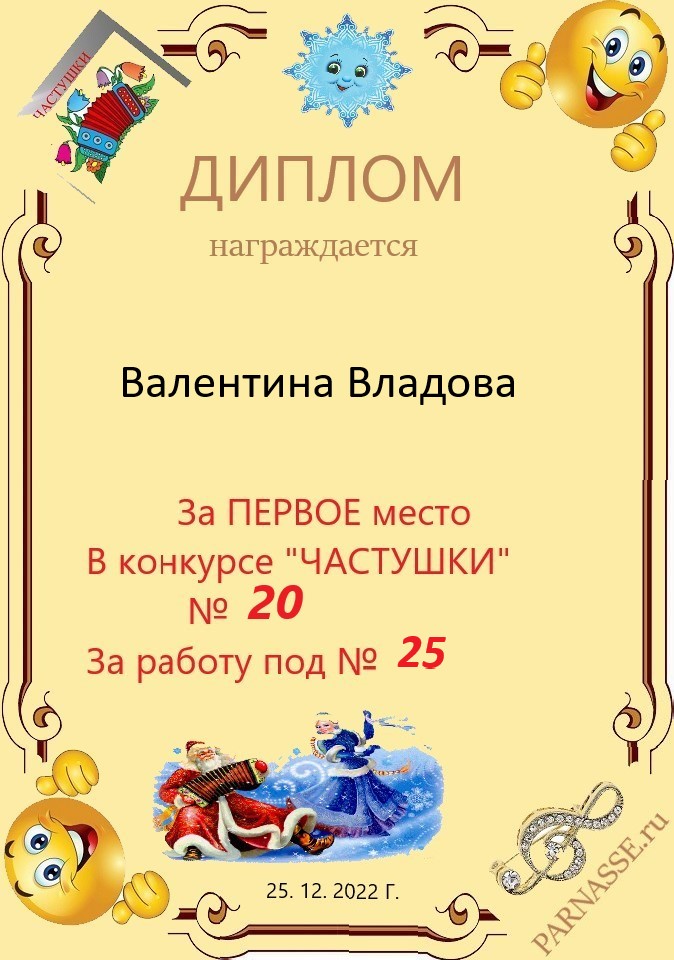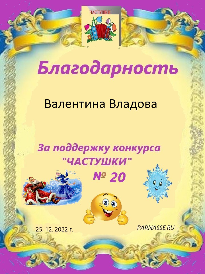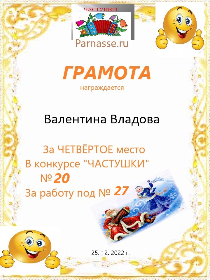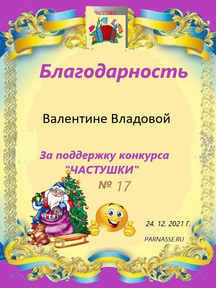 За прекрасные куплетики частушек к конкурсу "Дед Мороз на пороге".