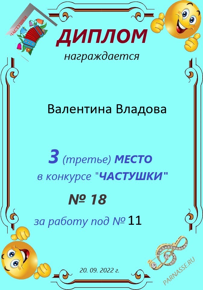 Третье место в судейском голосовании по итогам конкурса: «Пусть все птицы о счастье поют»