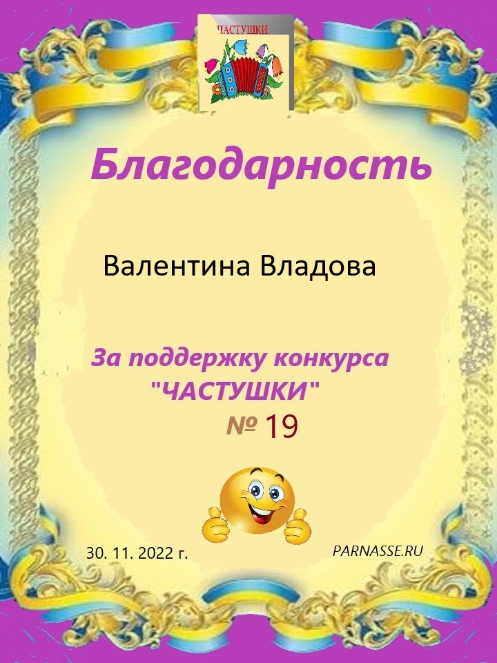 За участие в Блиц-конкурсе №13 «Замерзают дожди в ноябре»