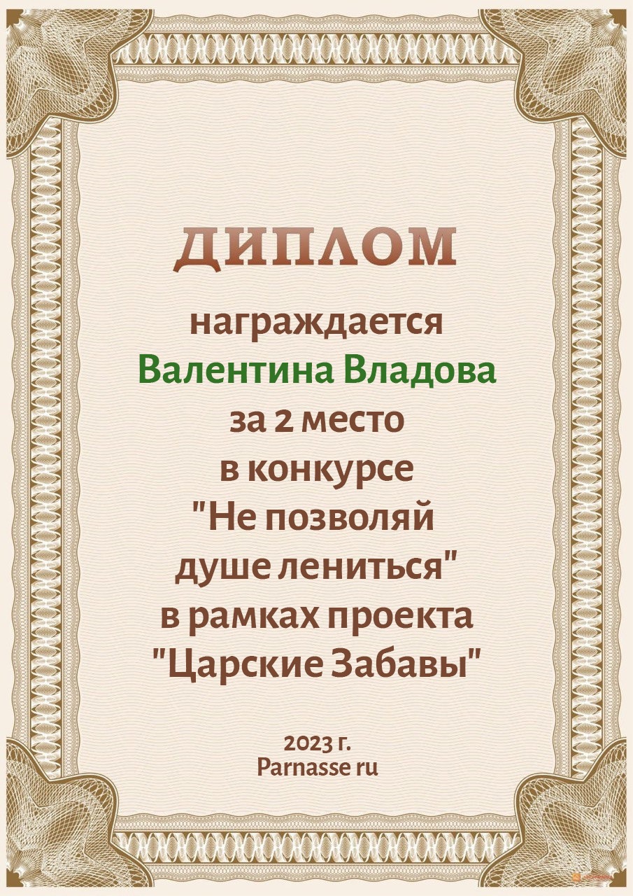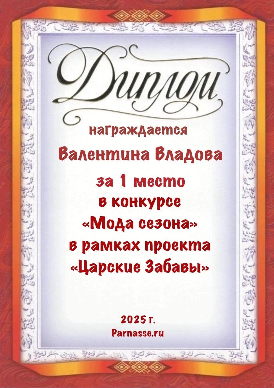 За 5 место в Конкурсе "Очарование золотой Осени" в рамках проекта "Царские Забавы"