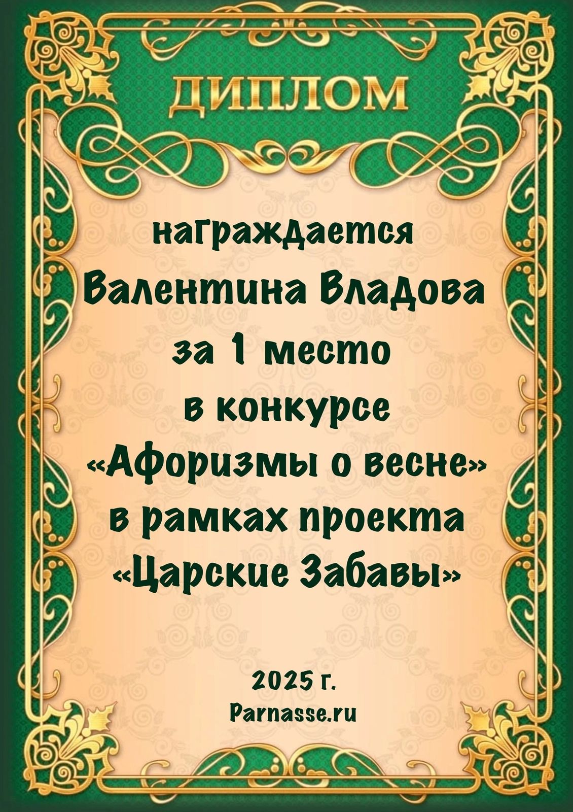 1 место в конкурсе "Афоризмы о весне". Поздравляем!