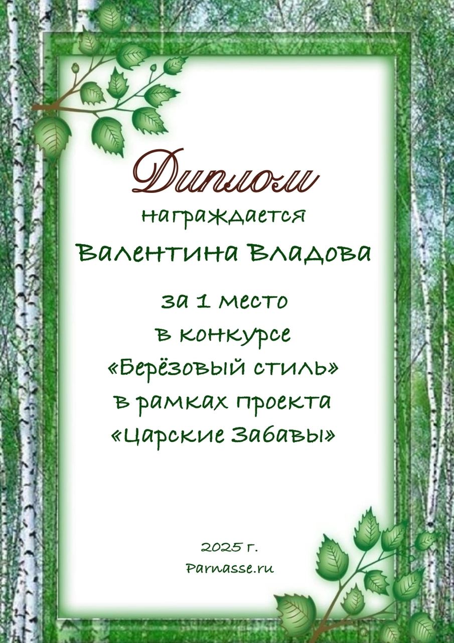 1 место в конкурсе "Берёзовый стиль". Поздравляем!
