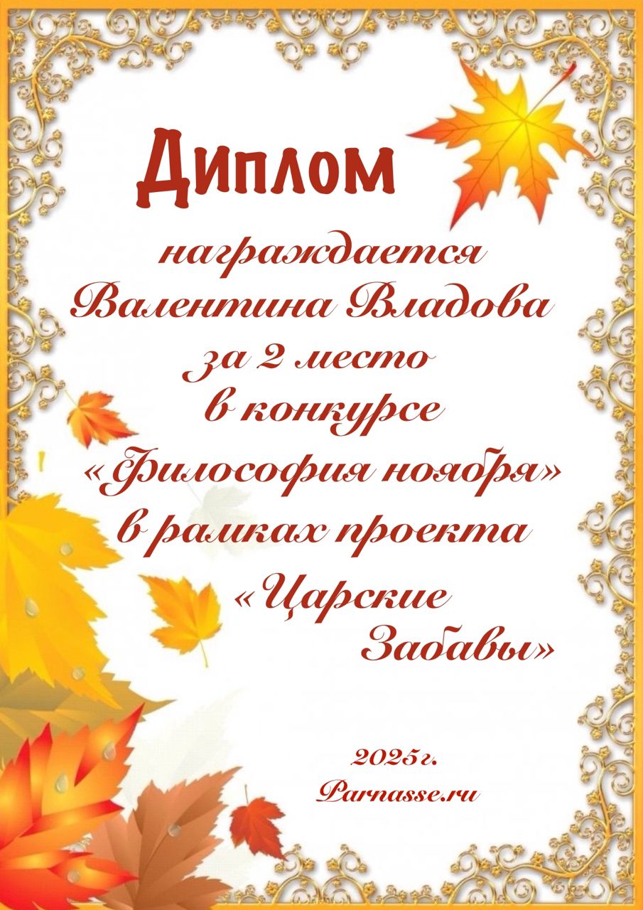 2 место в конкурсе "Философия ноября". Поздравляем!