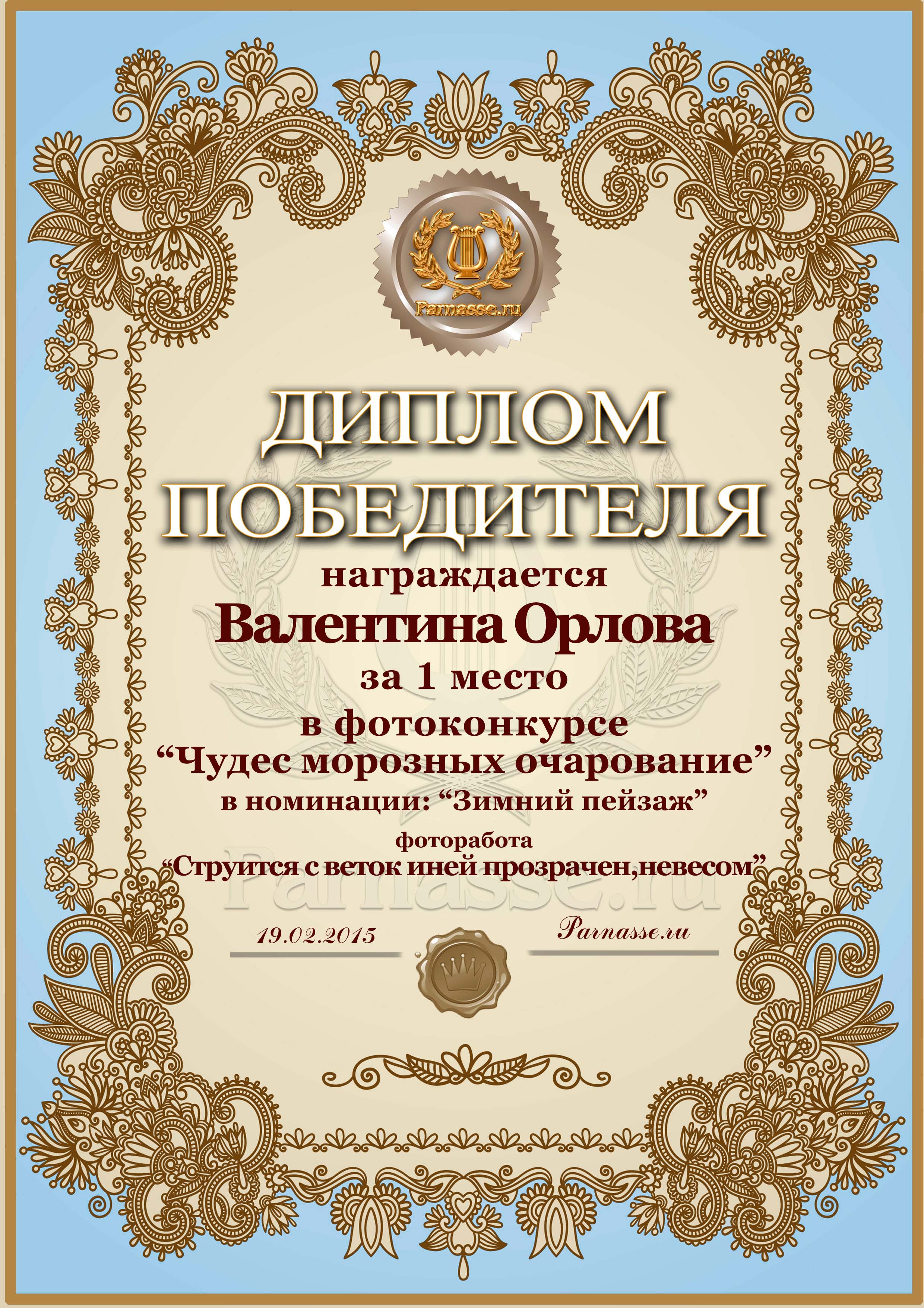 Диплом за 2 место в фотоконкурсе "Чудес морозных очарование"