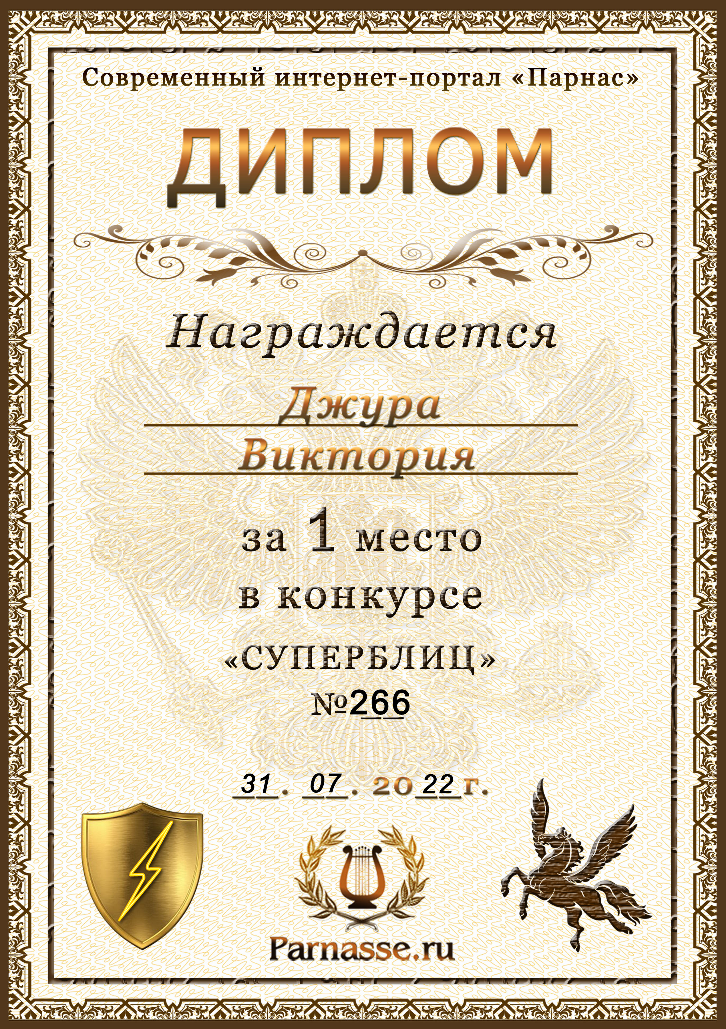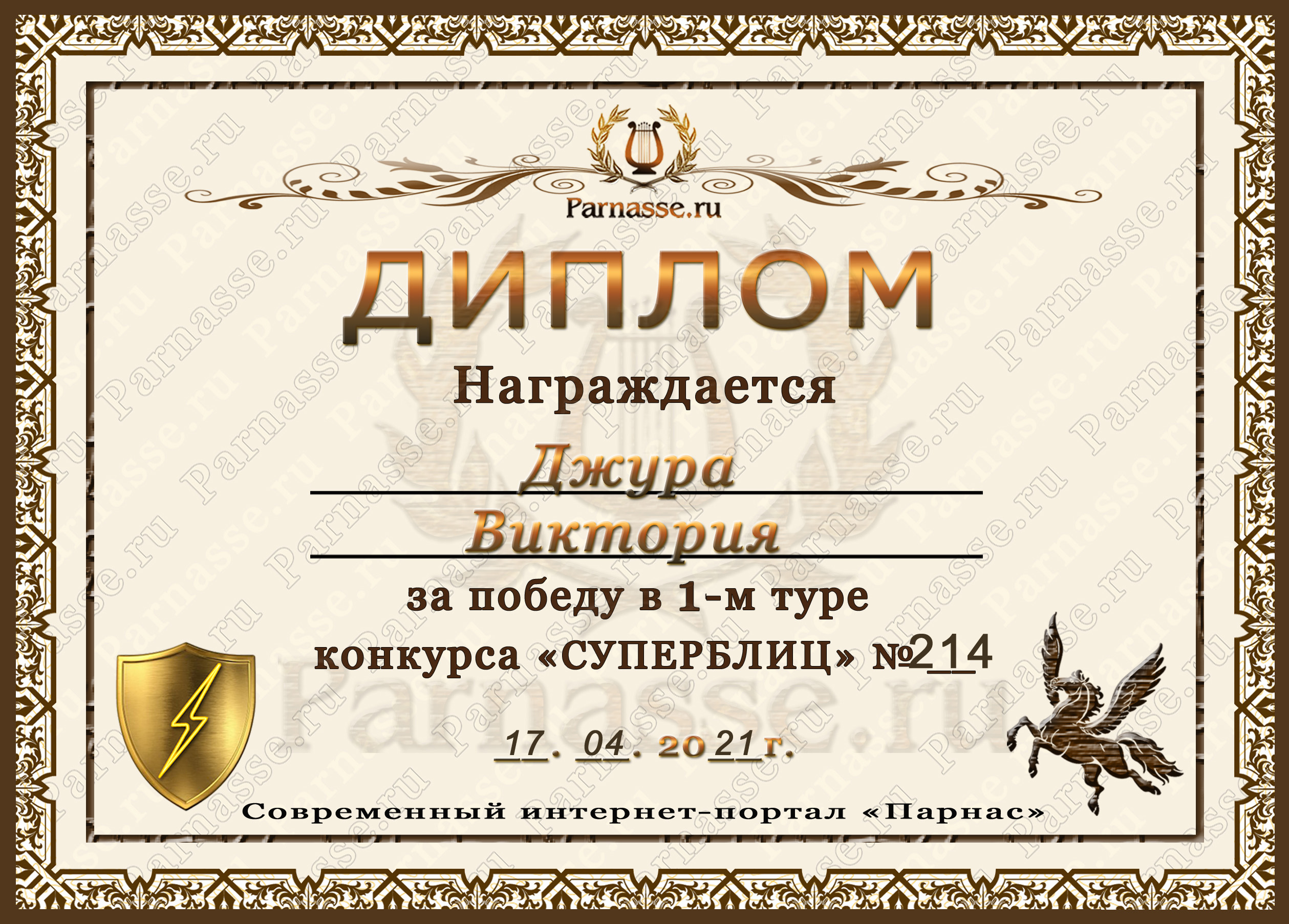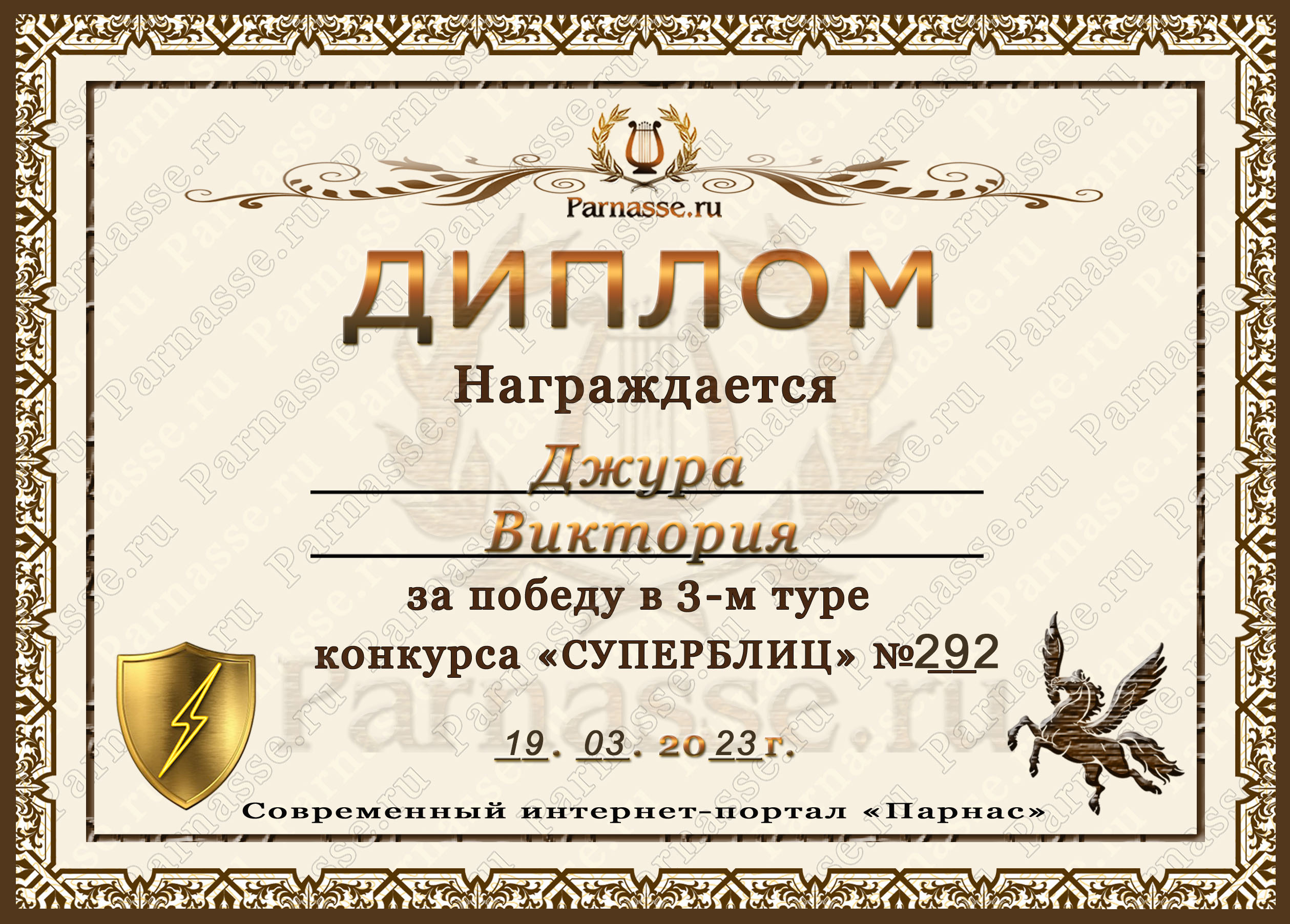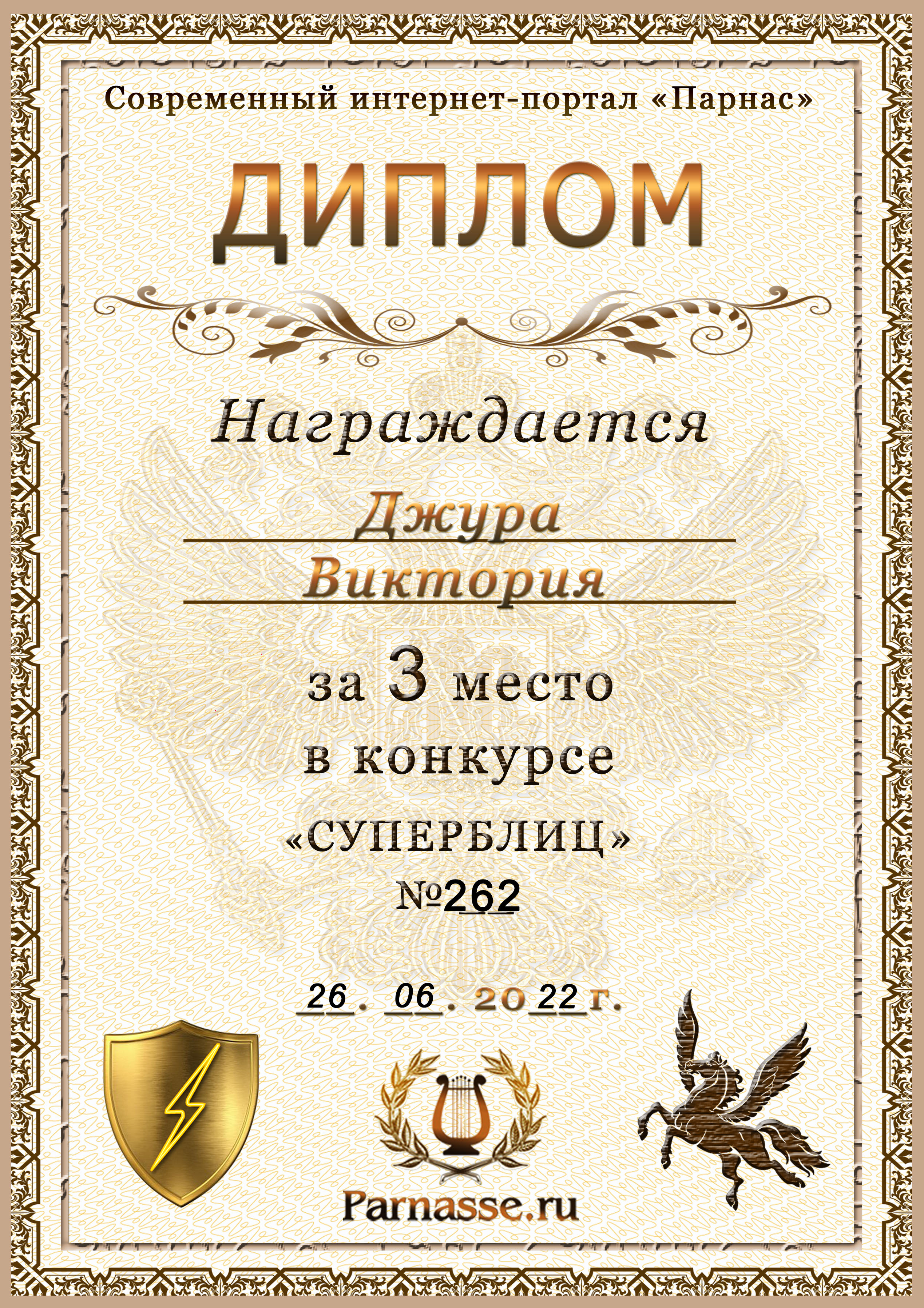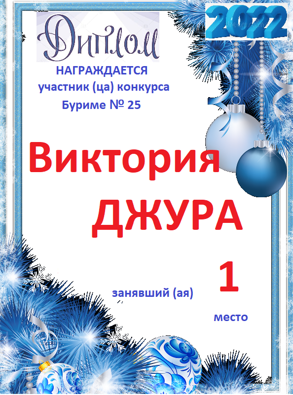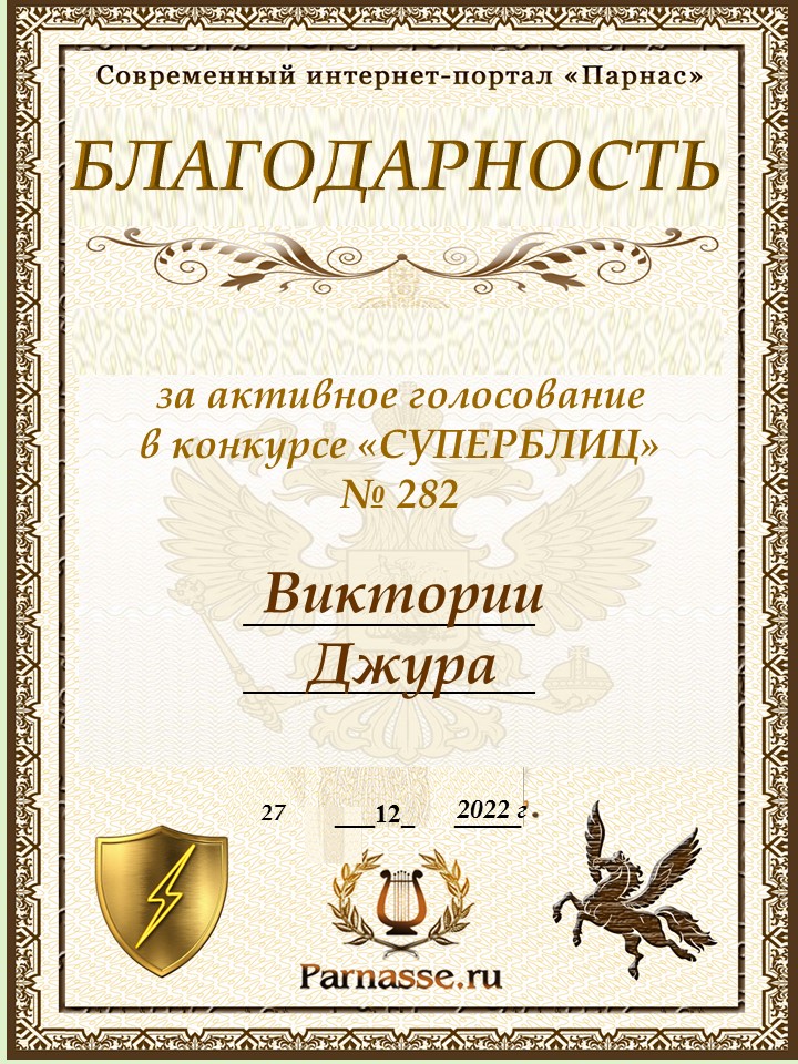 Диплом за победу во 2 туре в конкурсе СУПЕРБЛИЦА № 232! ПОЗДРАВЛЯЮ!