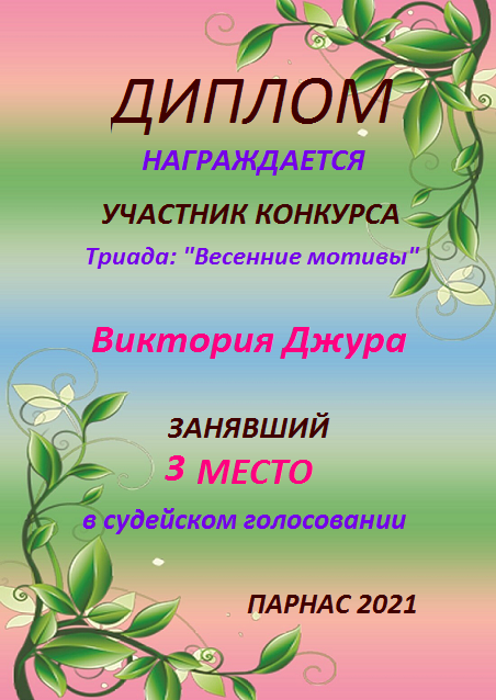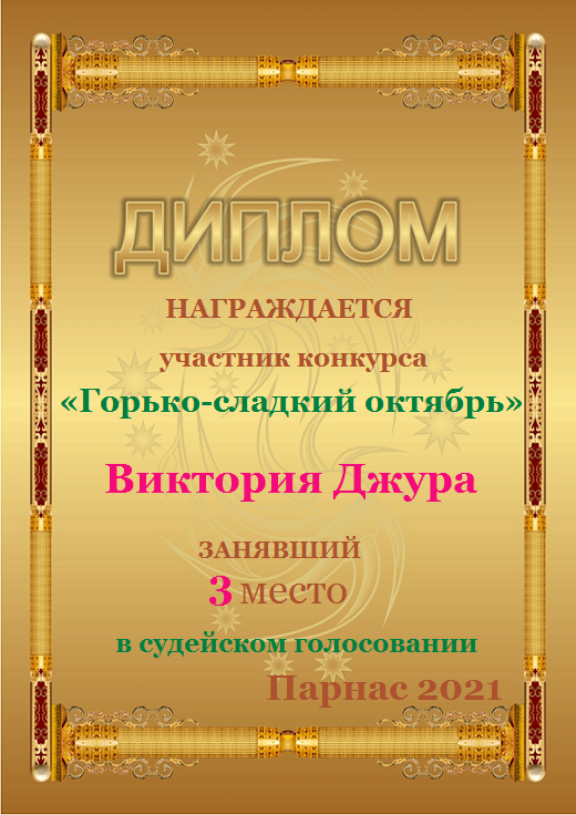 Поздравляю с занятым 3 местом в 7 туре XII Чемпионата Парнаса по прозе!