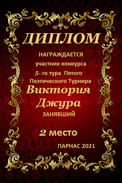 ![]() Медаль за 2 место в конкурсе "ЛитКомета - Полёт № 93"- Номинация Поэзия