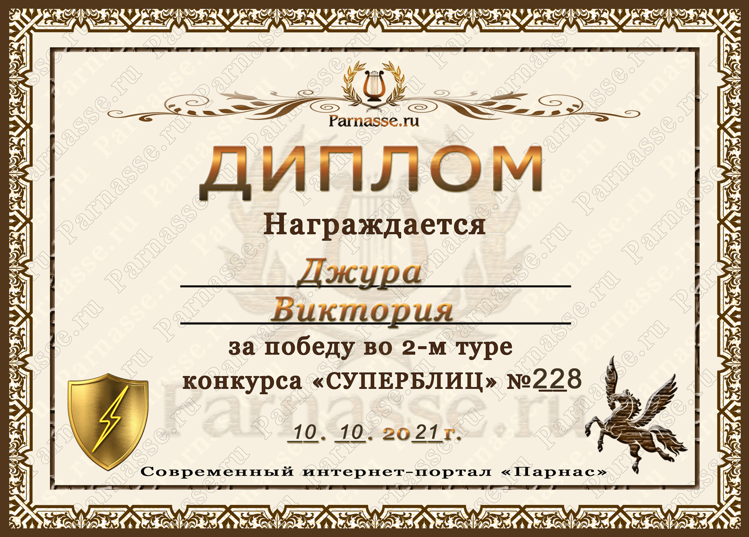 Диплом за победу во 2 туре в конкурсе СУПЕРБЛИЦА № 228! ПОЗДРАВЛЯЮ!