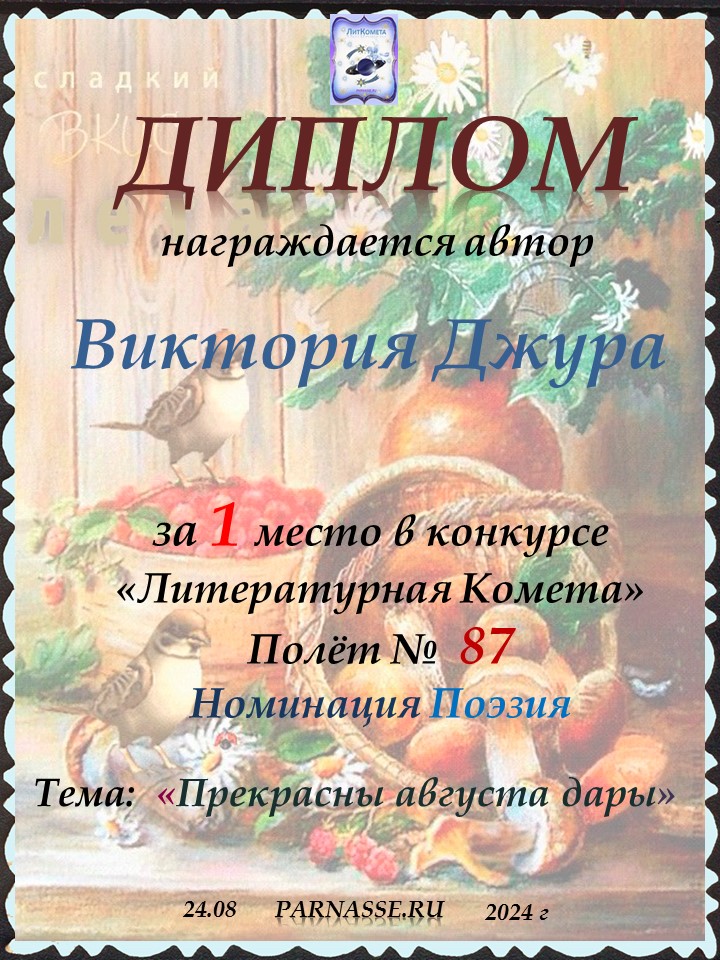 Поздравляю с занятым 1 местом в конкурсе "ЛитКомета - Полёт № 87" - Номинация Поэзия!