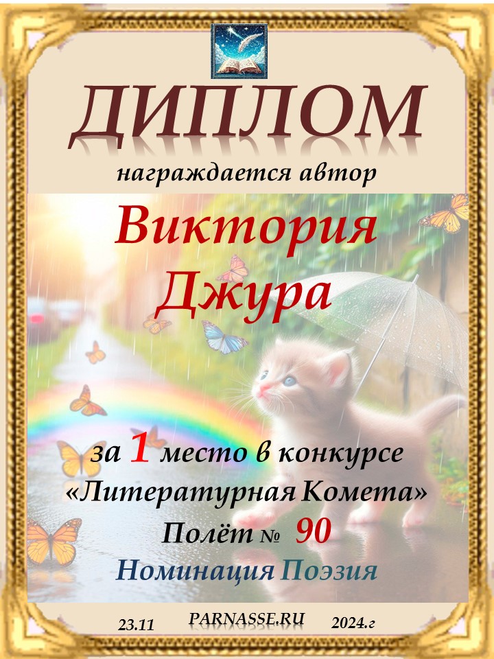 Поздравляю с занятым 1 местом в конкурсе "ЛитКомета - Полёт № 90" - Номинация Поэзия!