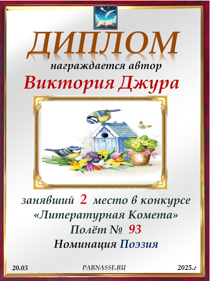 Поздравляю с занятым 2 местом в конкурсе "ЛитКомета - Полёт № 93" - Номинация Поэзия!