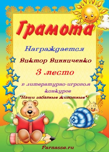 Первое место в конкурсе "Защитник Родины своей" в прозаической номинации "Защитникам Отечества посвящается". Произведение "Нельзя забыть"