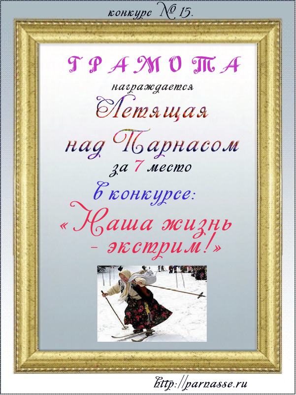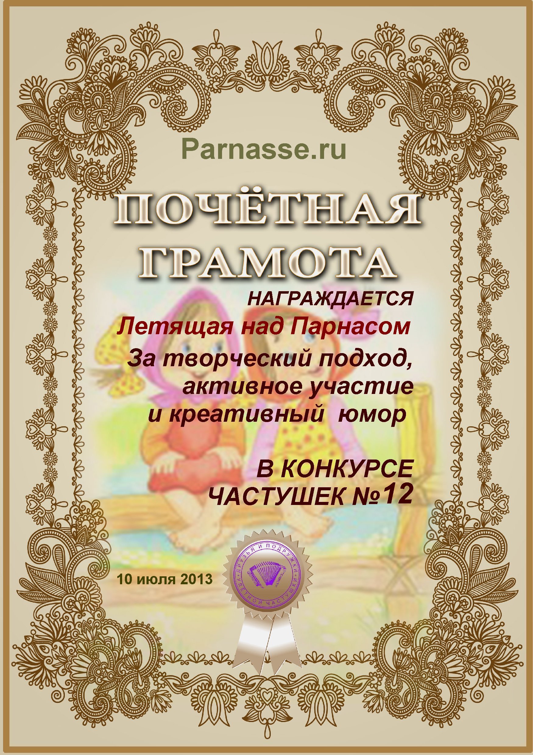 Похвальная грамота за 4 место в конкурсе лимериков № 40+ (19.08.2013 г.)