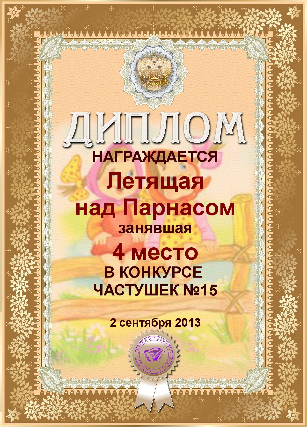Диплом за победу и 3 место в конкурсе лимериков № 38+ (8.07.2013 г.)