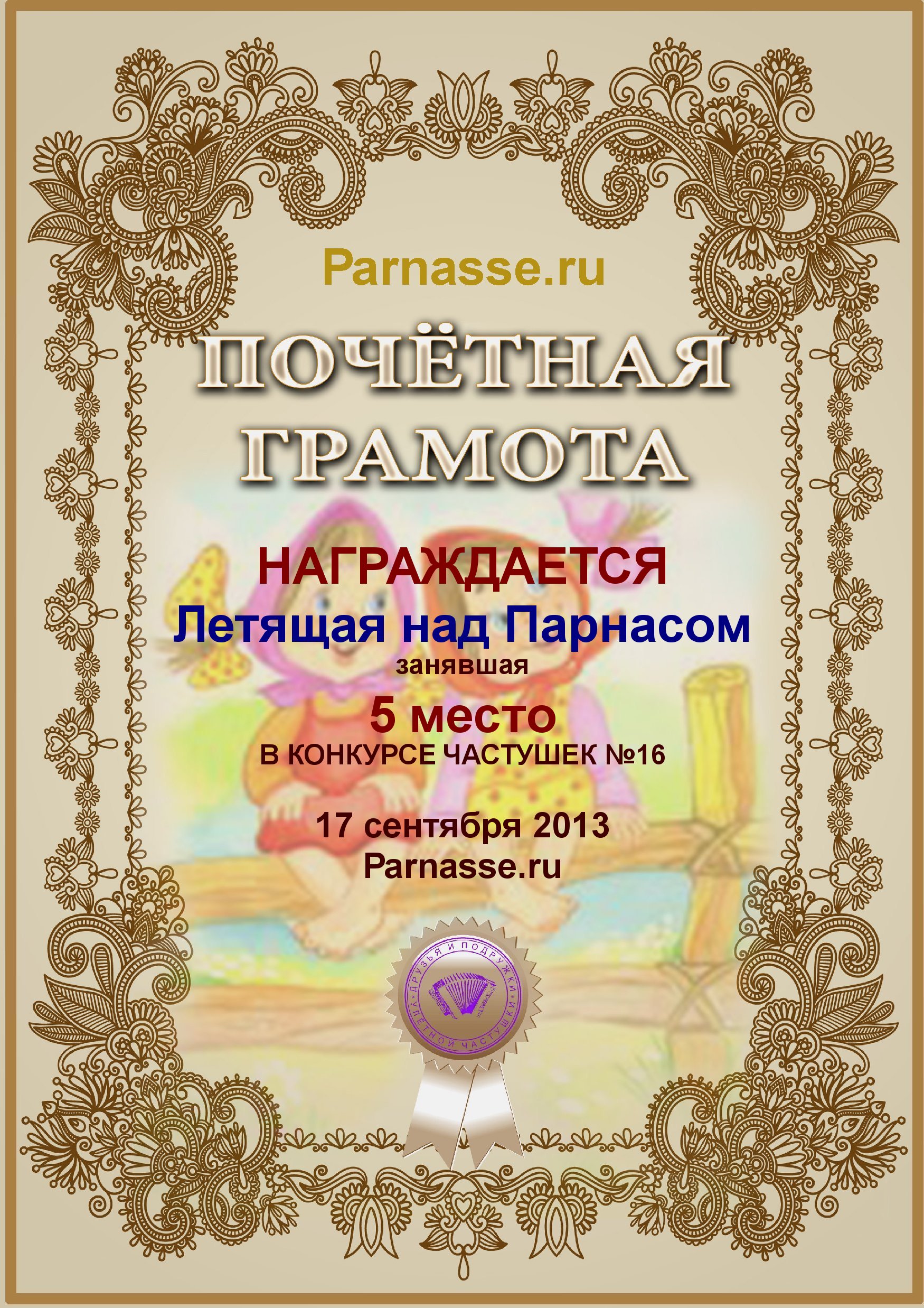 Похвальная грамота за 5 место в конкурсе лимериков № 39+ (29.07.2013 г.)
