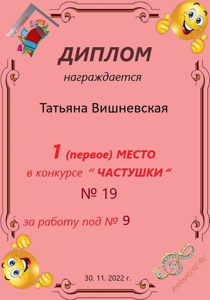 за работу под № 9 в конкурсе "ЧАСТУШКИ" № 19
