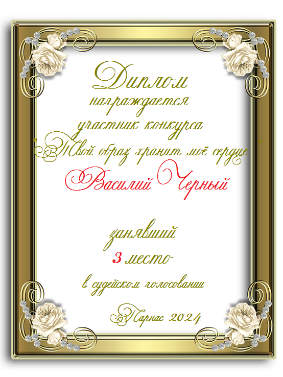 Первое место в праздничном конкурсе "Поздравим Парнас вместе!", в номинации "Самое необычное поздравление Парнаса с Днём Рождения". Сердечно благодарим Вас за великолепные оригинальные поздравления и прекрасные пожелания нашему Парнасу! Мы рады, что Вы с нами, и желаем, чтобы Ваше творчество и впредь радовало нас своей красотой, легкостью, образностью и глубочайшим эмоциональным смыслом! Пусть удача всегда сопутствует Вам во всех начинаниях, а здоровье никогда не подводит, будьте всегда на пике творческой активности и мы с Вами встретим еще не одну годовщину сайта! Будьте счастливы и всегда готовы к новым свершениям на благо искусства! Произведение "Парнасу - 3 года"