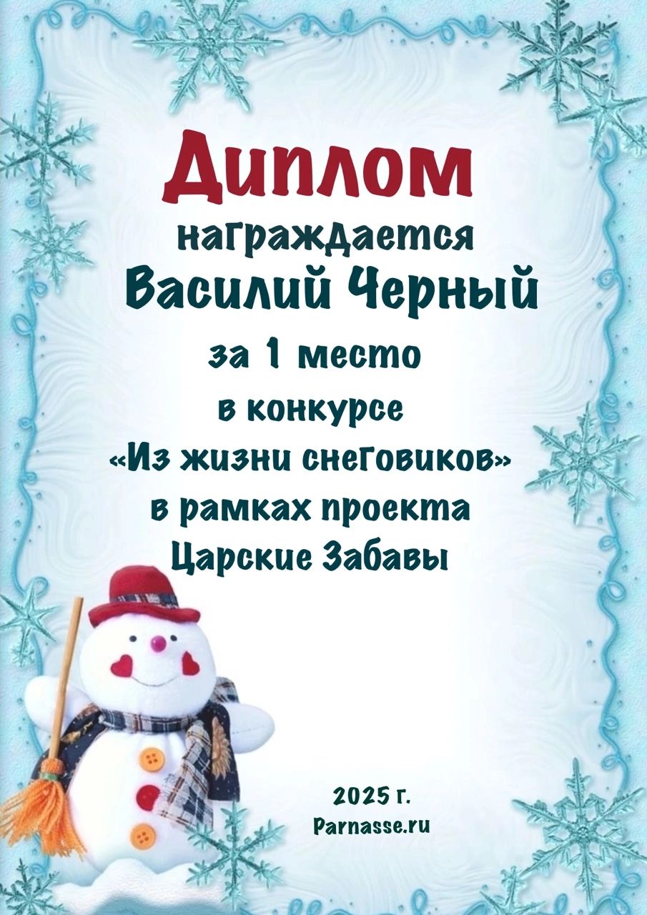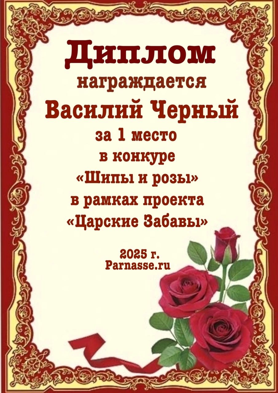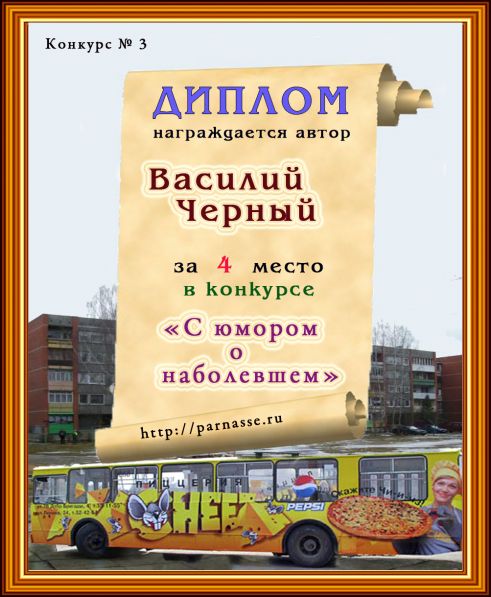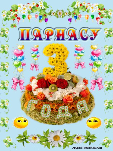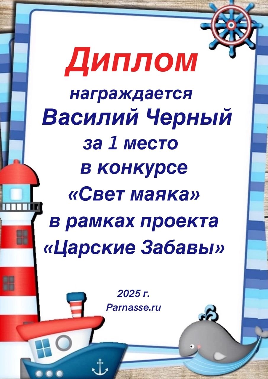 Диплом Победителя за 1 место в праздничном конкурсе "Поздравим Парнас с трёхлетием вместе!"