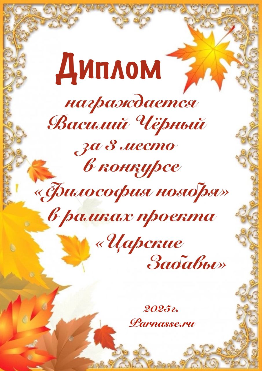 3 место в конкурсе "Философия ноября". Поздравляем!