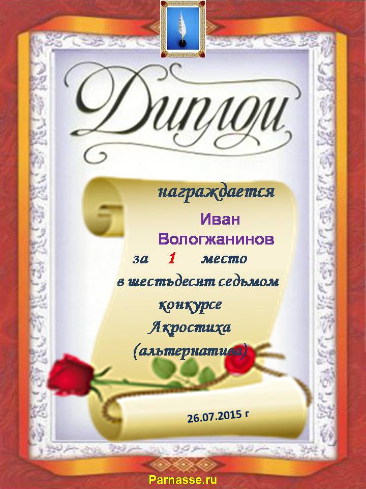 Диплом победителю в конкурсах Акростиха в связи с пятилетием конкурса Акростиха!