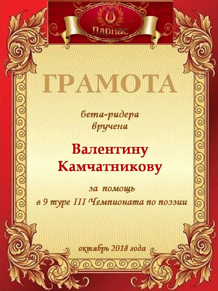 Поздравляем с 3 местом в 9 туре Чемпионата Поэзии!