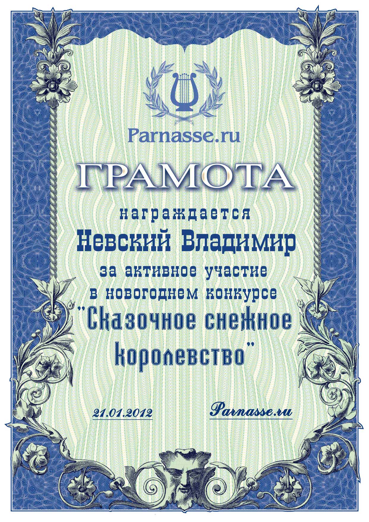 От лица Администрации творческого портала "Парнас" вручаем Вам этот памятный знак с самыми наилучшими пожеланиями! Пусть Вас весь год не покидает творческий запал, удача, а здоровье будет столь же крепким и нерушимым, как и традиция Новогоднего праздника! Счастья, успехов и любви Вам и Вашей семье, друзьям и близким!