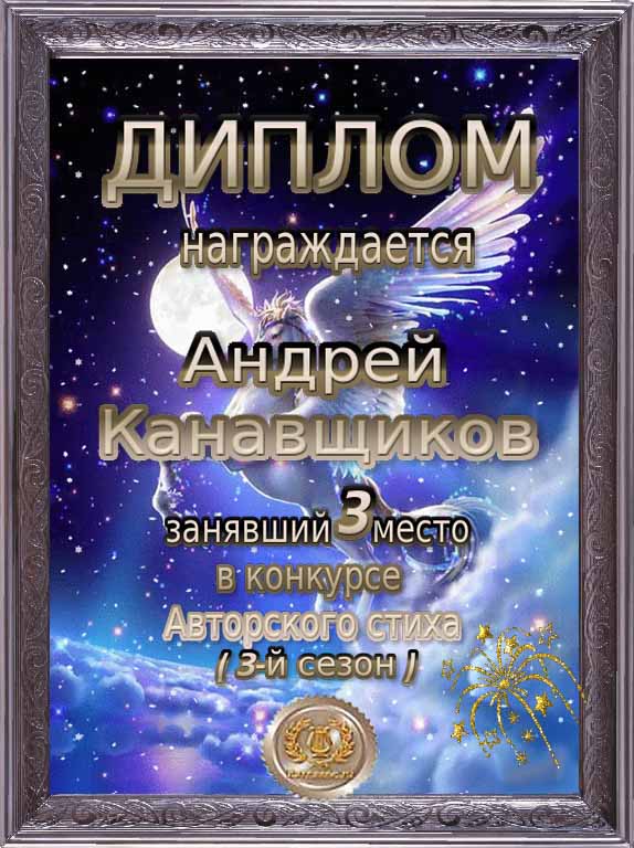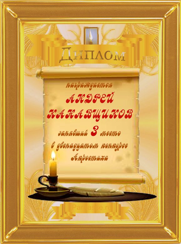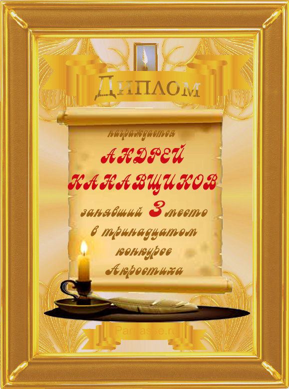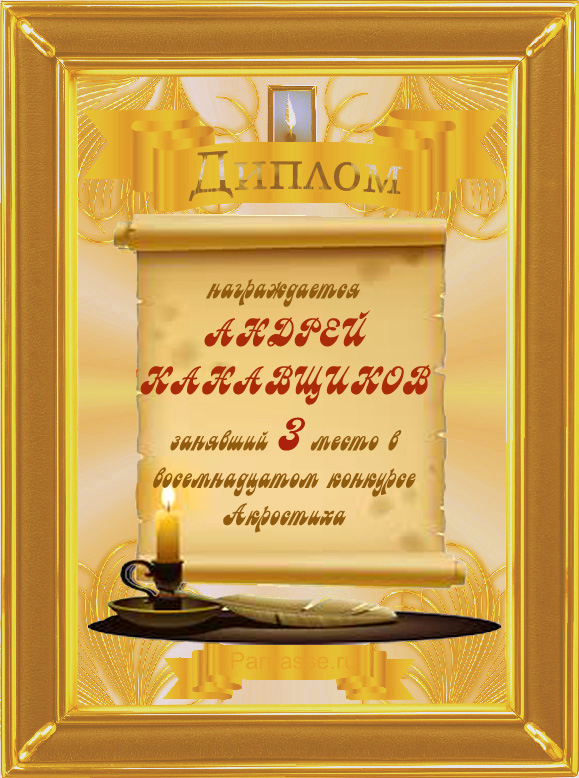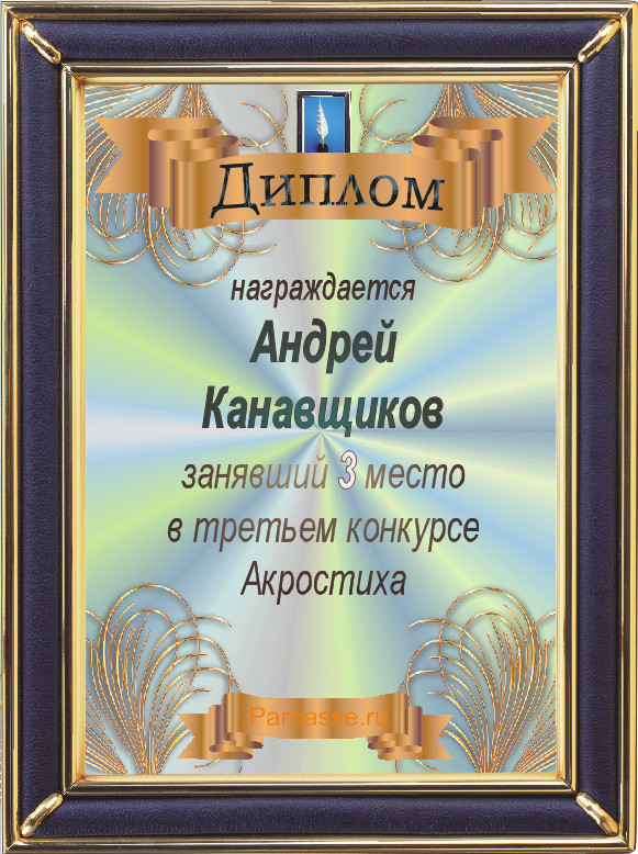 Диплом за 3 место в 1 годовом итоговом конкурсе АКРОСТИХА "Выбираем лучших" (Альтернатива)! ПОЗДРАВЛЯЮ!
