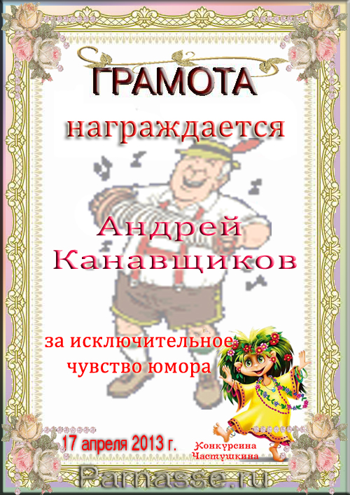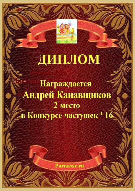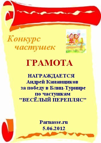 Поздравляю, Андрей, с 5 местом в конкурсе частушек № 7++