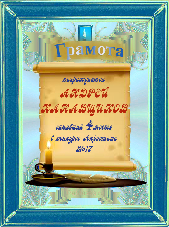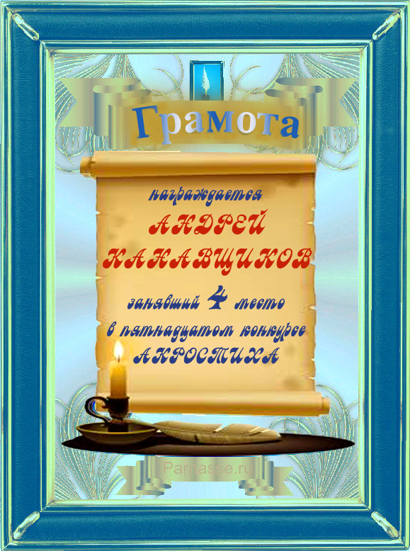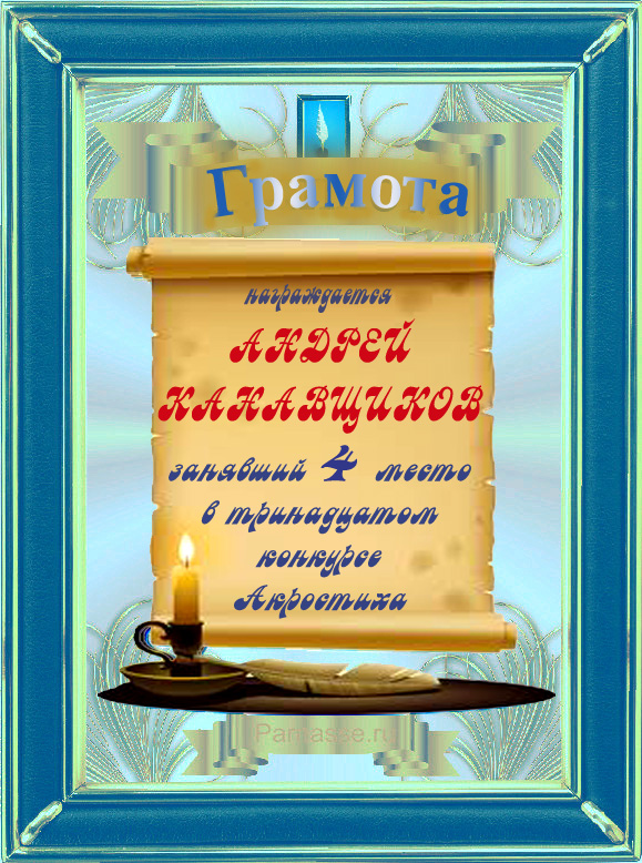 Грамота за 4 место во 2 годовом Альтернативном итоговом конкурсе АКРОСТИХА! ПОЗДРАВЛЯЮ!