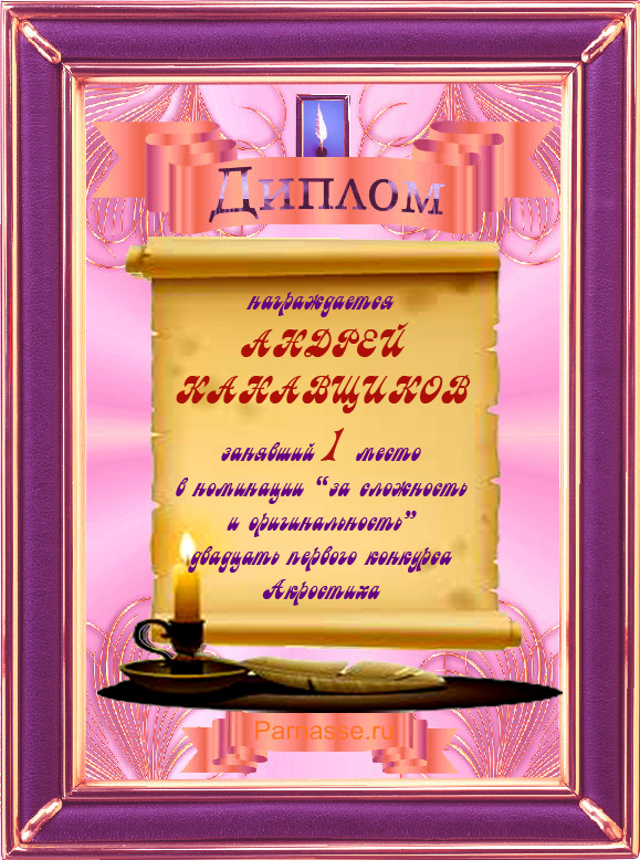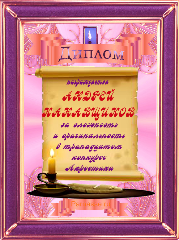 Диплом за победу в 34 конкурсе АКРОСТИХА (Дополнительная номинация «За сложность и оригинальность»)! ПОЗДРАВЛЯЮ!