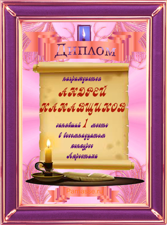 Диплом победителю в конкурсах Акростиха в честь пятилетия конкурса Акростиха!