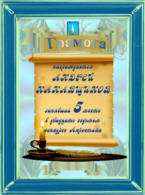Грамота за 5 место во 2 годовом конкурсе Акростиха по итогам судейского голосования! ПОЗДРАВЛЯЮ!
